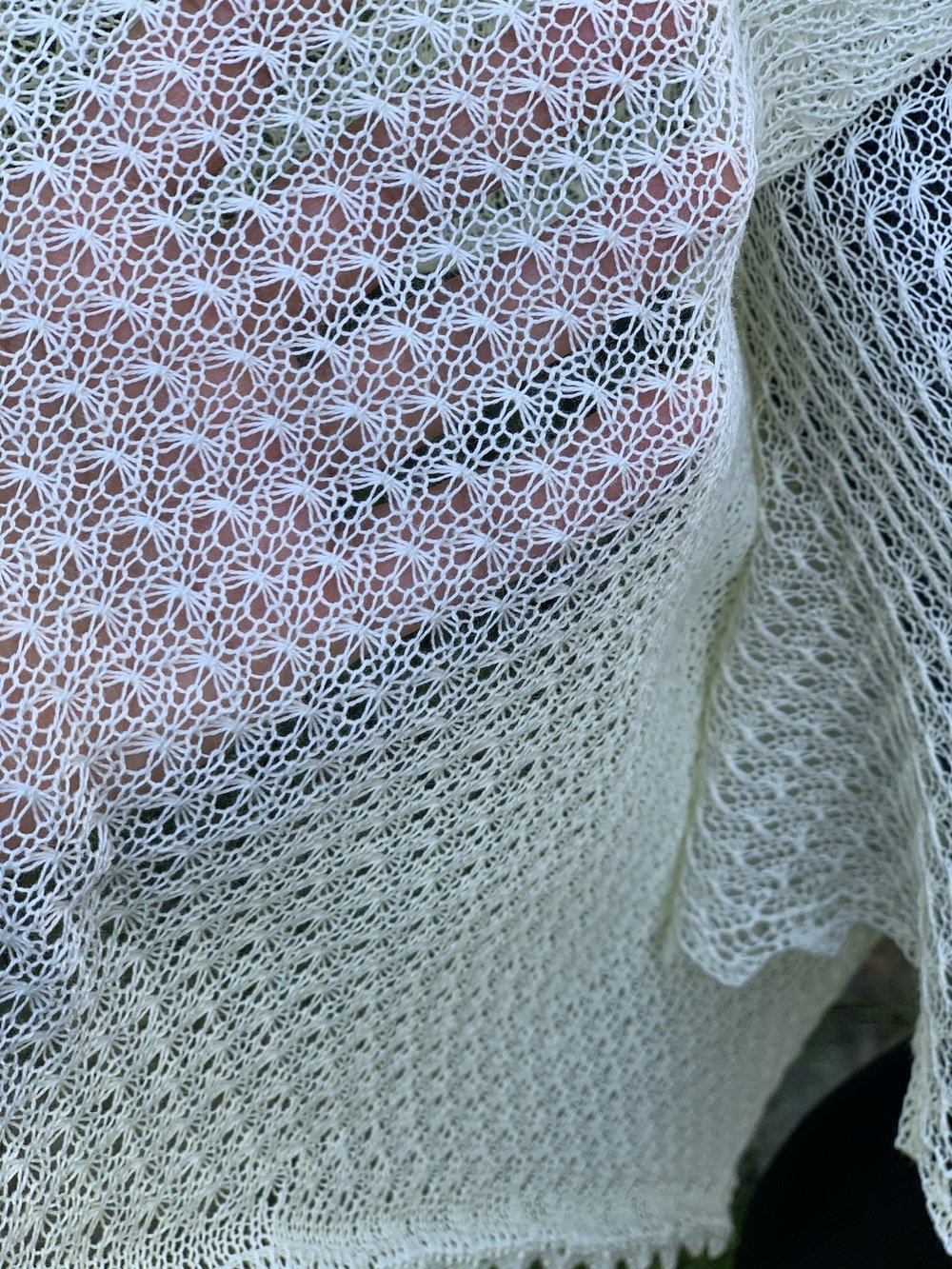 Dzięki temu, że te drobniutkie oczka są wykonane na maszynie i nie musiałam poświęcać na nie tygodni pracy... mogłam użyć do projektu dobrej jakości włóczki i sprzedać go za całkiem przystępną cenę.