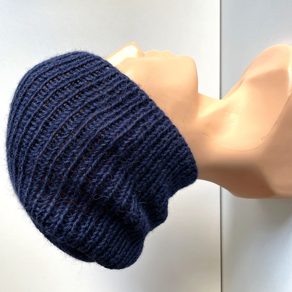 Czapka zrobiona na drutach KIARA 100% Alpaka 5575 Granatowy