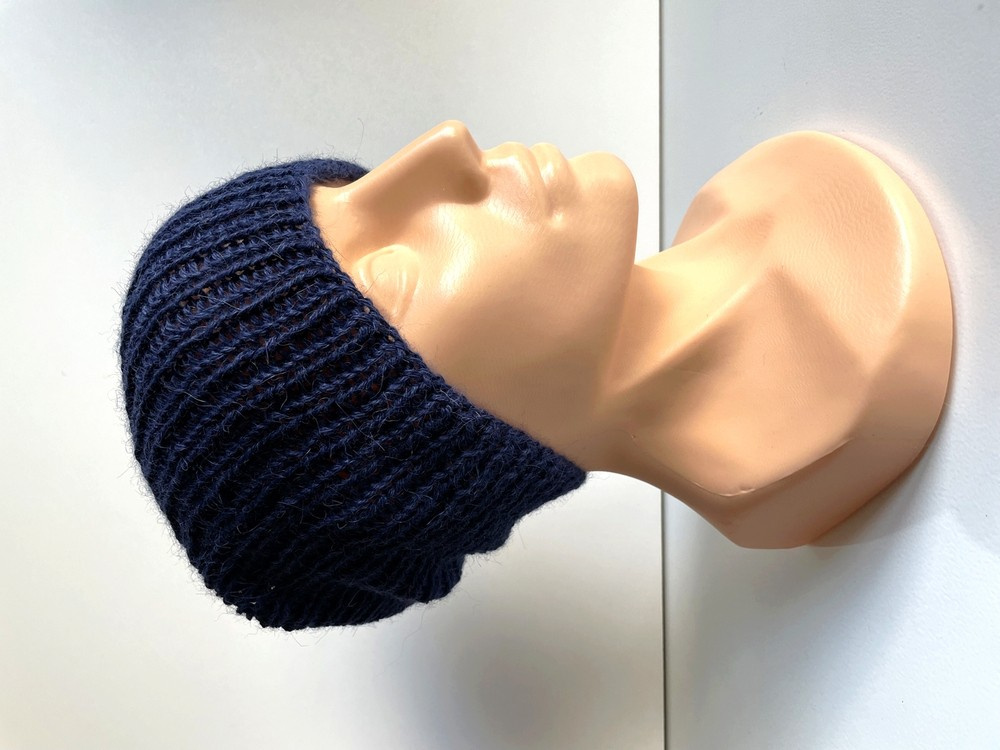 - Ręcznie robiona Czapka hand made Granatowa Ściągacz 100% Alpaka