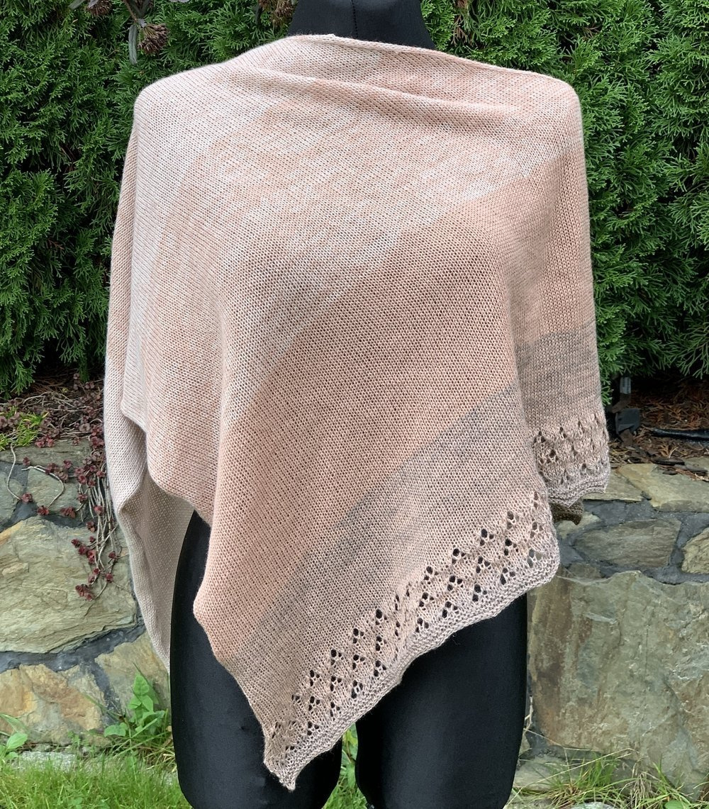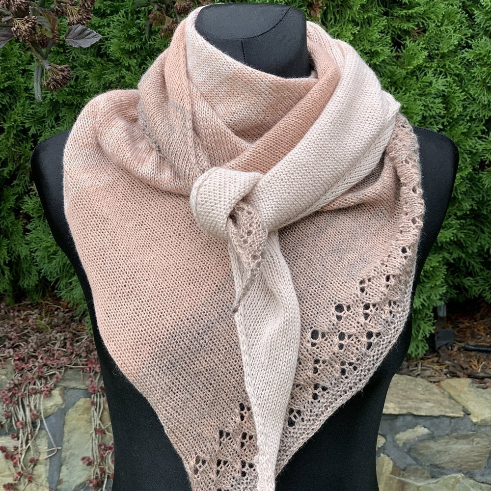 Elegancka chusta z mieszanki merynosa i akrylu wykończona subtelnym ażurem, który dodaje jej lekkości i uroku.