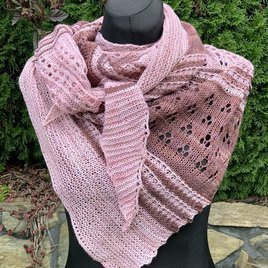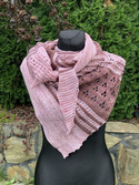 Piękna i delikatna chusta asymetryczna z ręcznie farbowanej 100% jagnięcej wełny merynosowej wykonana ręcznie na drutach.
