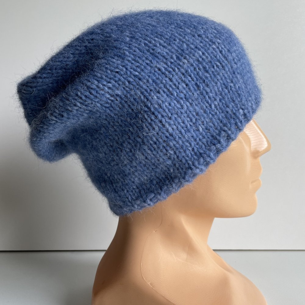 Ciepła czapka ręcznie robiona CHMURKA Alpaka 16 Niebieski