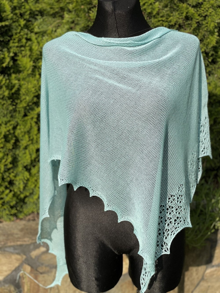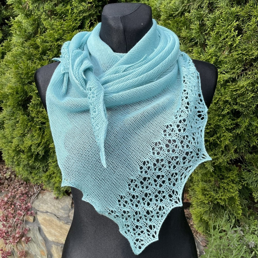 Chusta asymetryczna z ażurem Kaszmir, Jedwab, Alpaka Miętowa