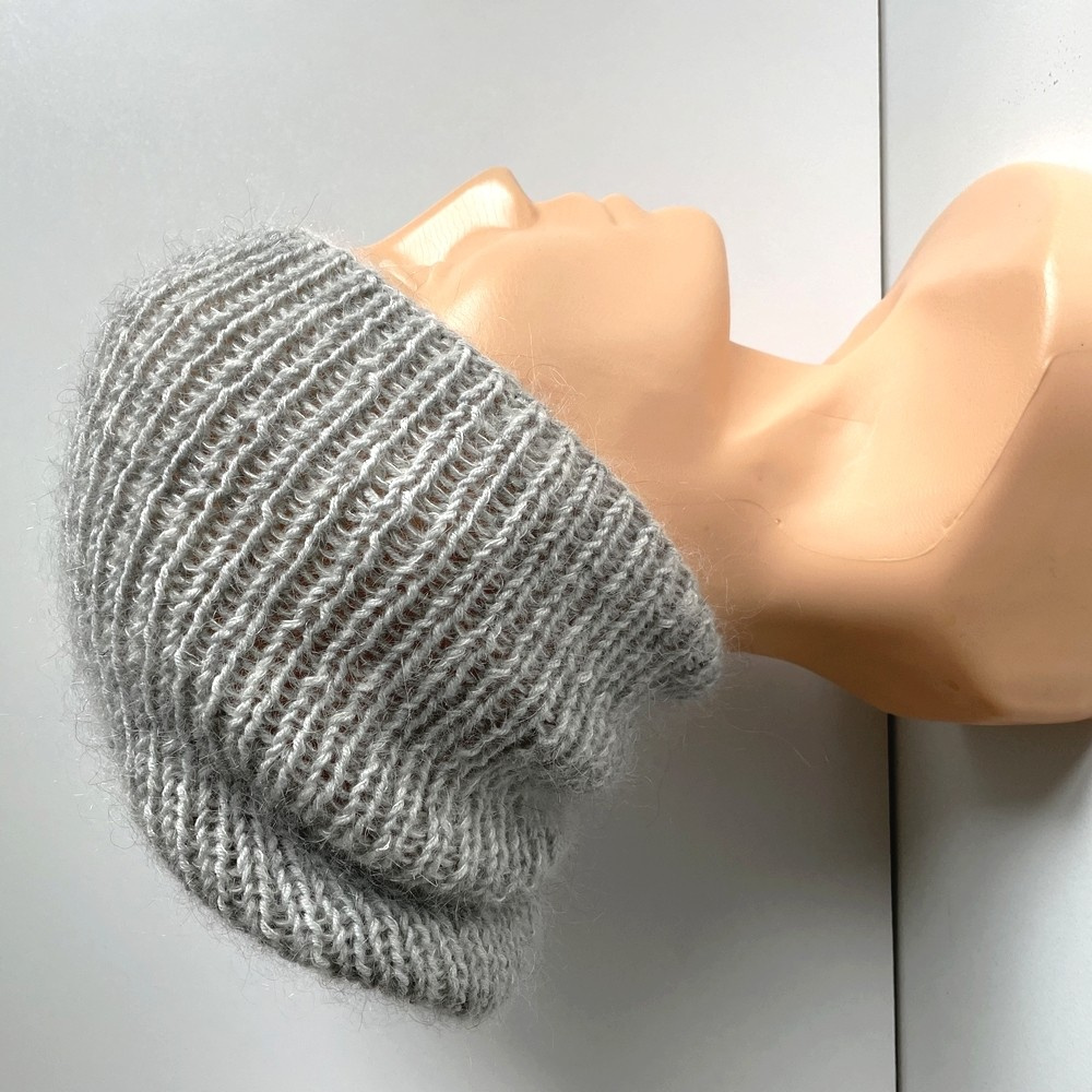 Handmade Czapka damska AUREA 100% Baby Merino plus moher i jedwab 22/44 Jasny Szary