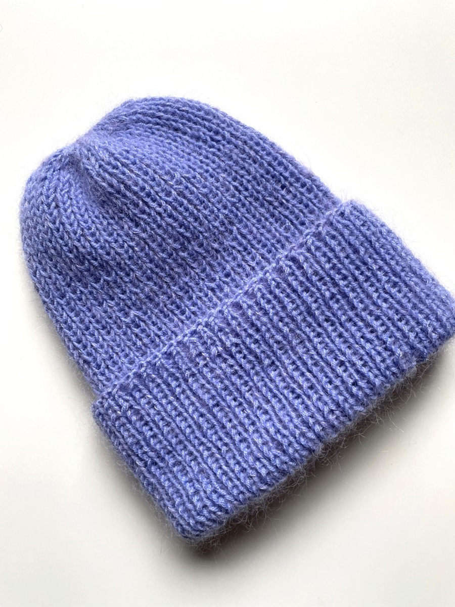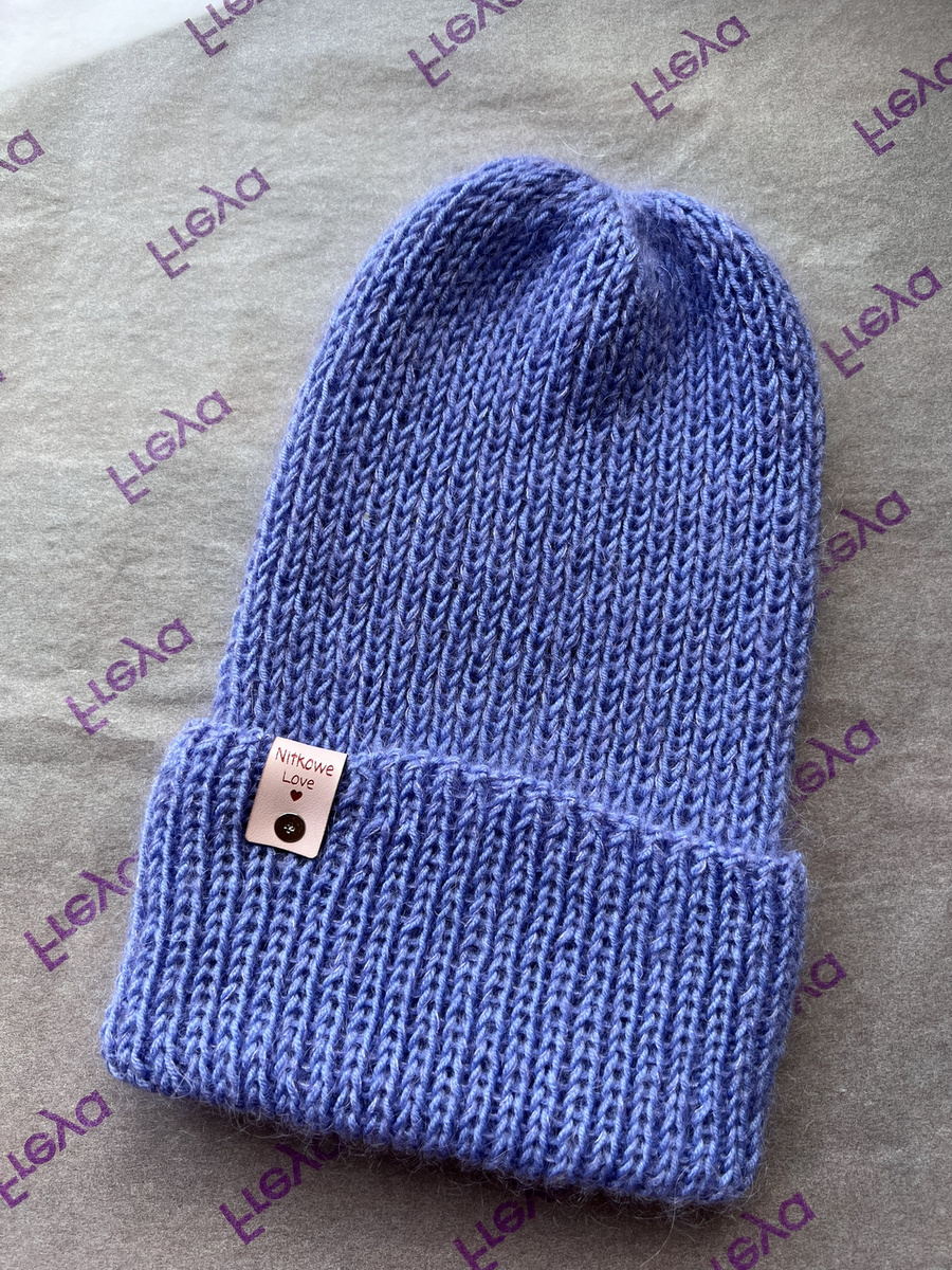 Ręcznie robiona czapka beanie AUREA 100% Baby Merino plus moher i jedwab 25/11 Lawenda