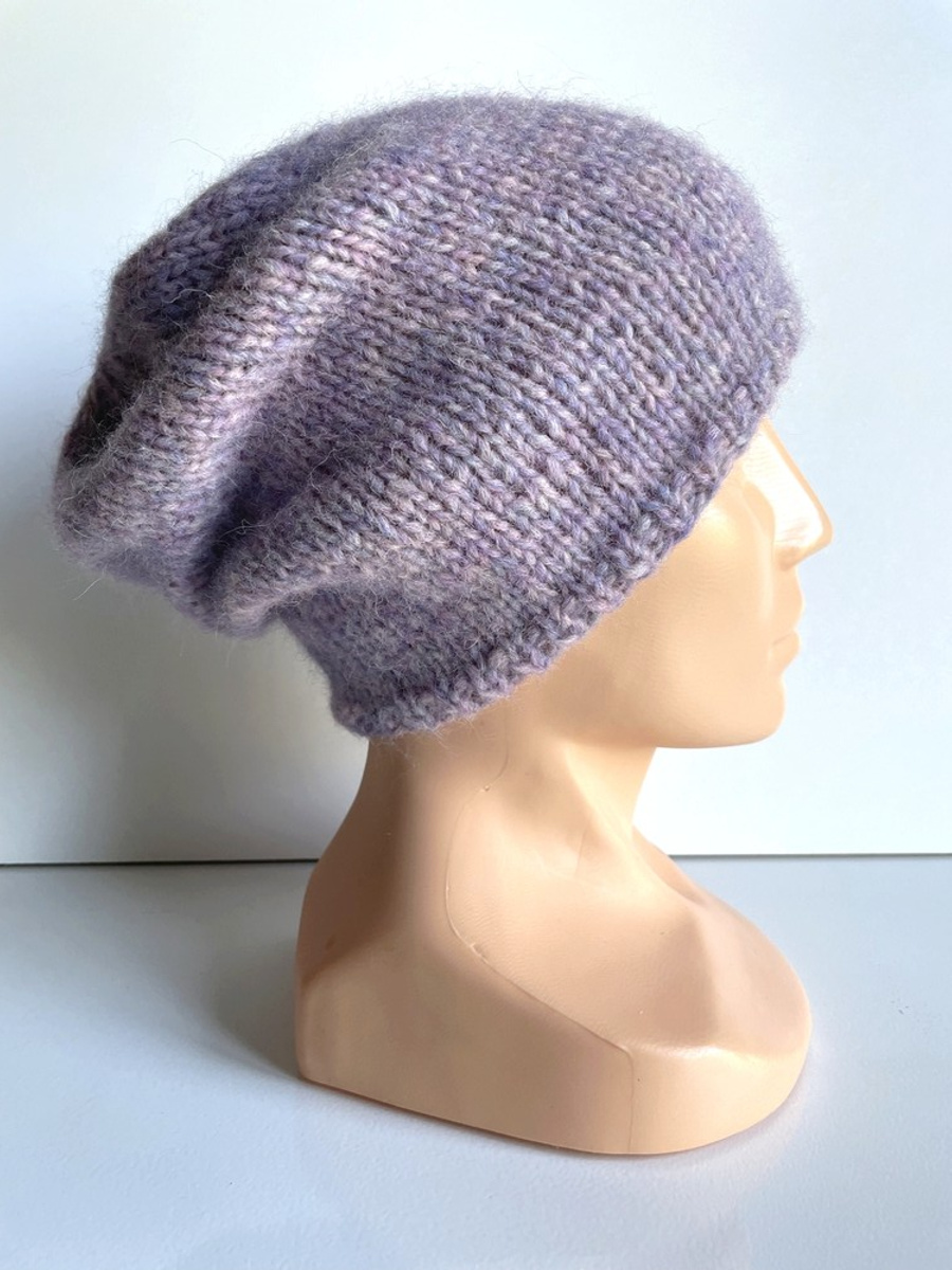 Opinie o Ciepła czapka ręcznie robiona CHMURKA Alpaka 15 Fioletowa Mgiełka