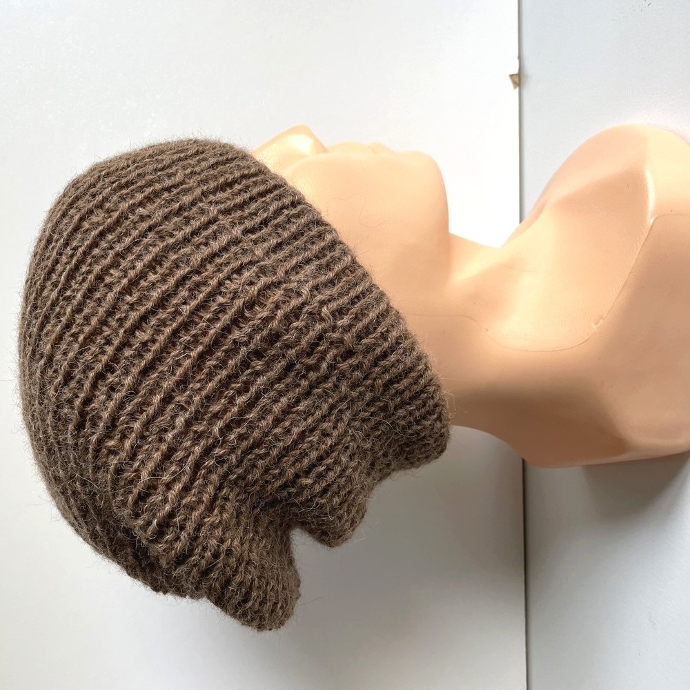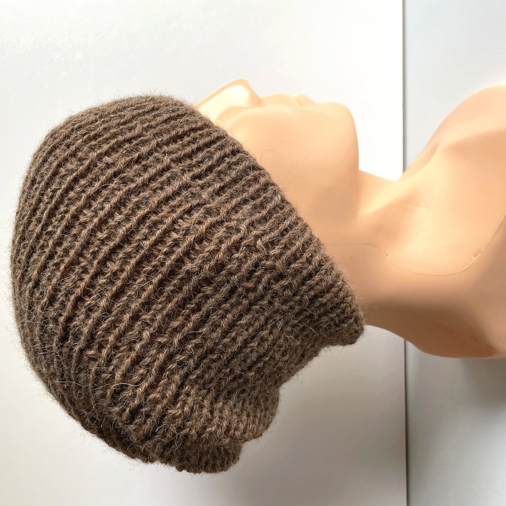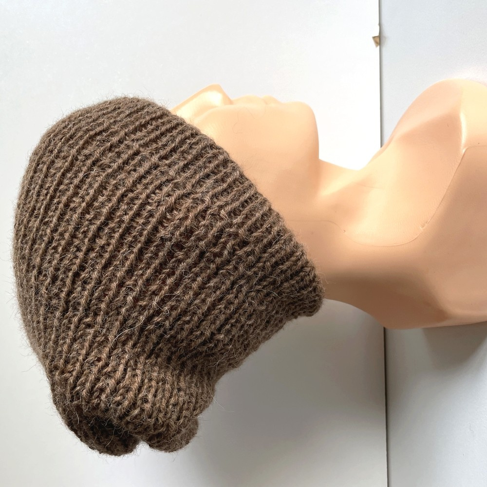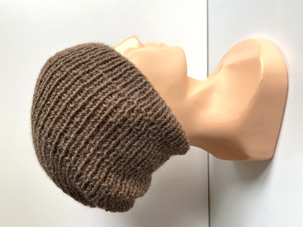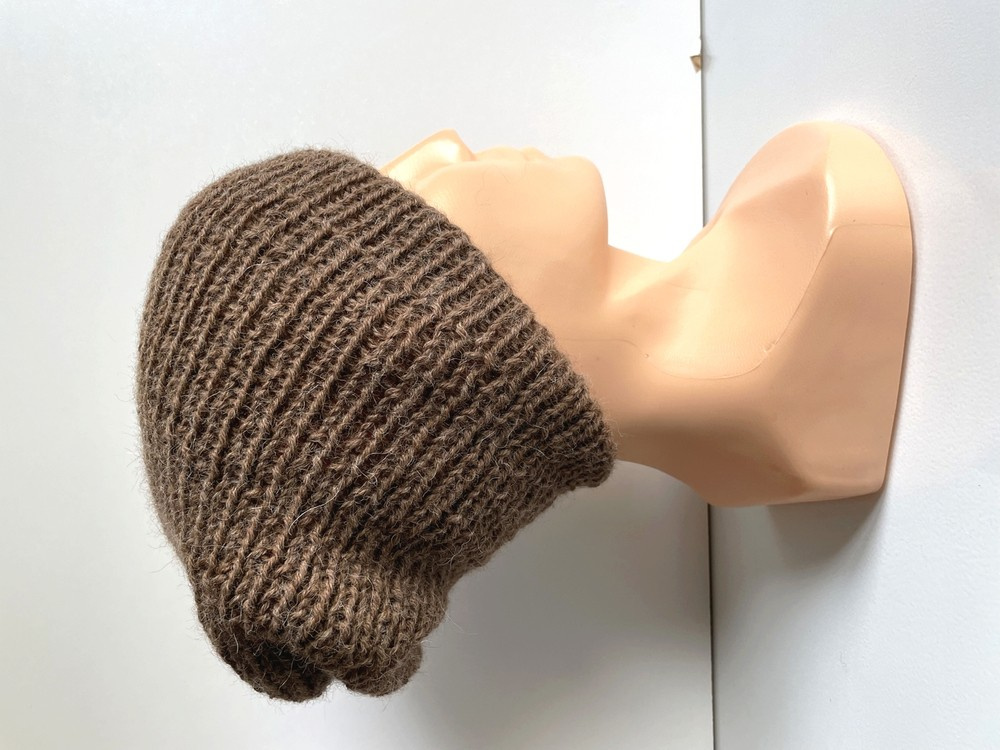 - Czapka zrobiona na drutach Ściągacz 100% Alpaka 607 Jasny Brąz