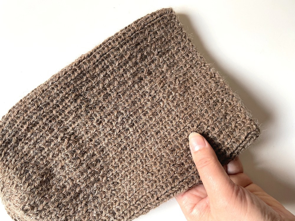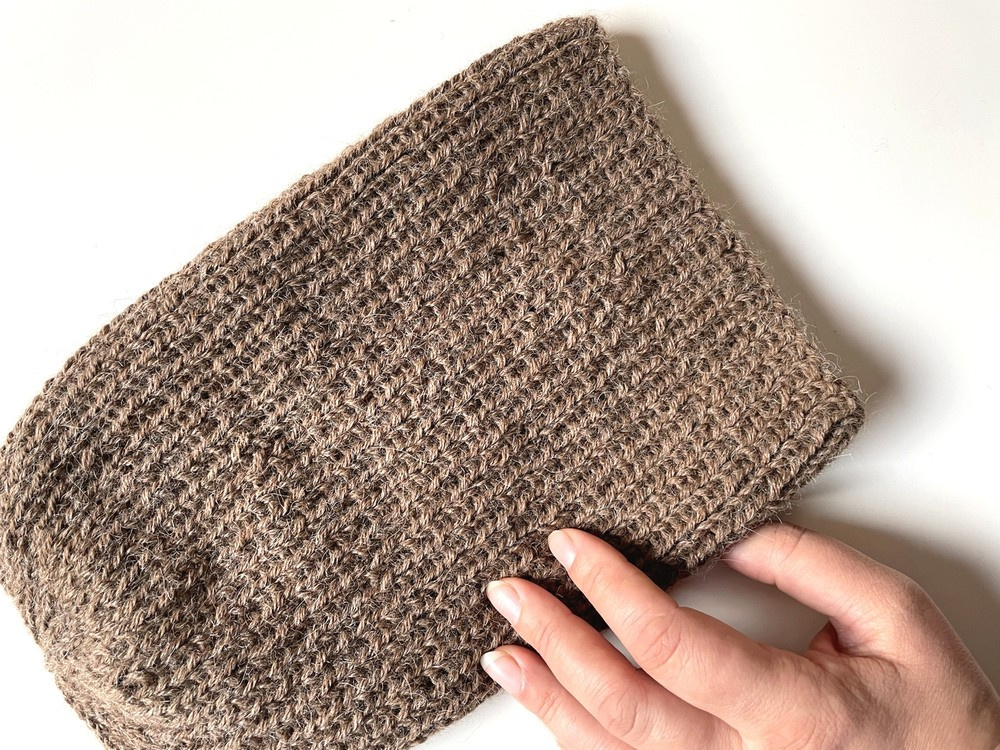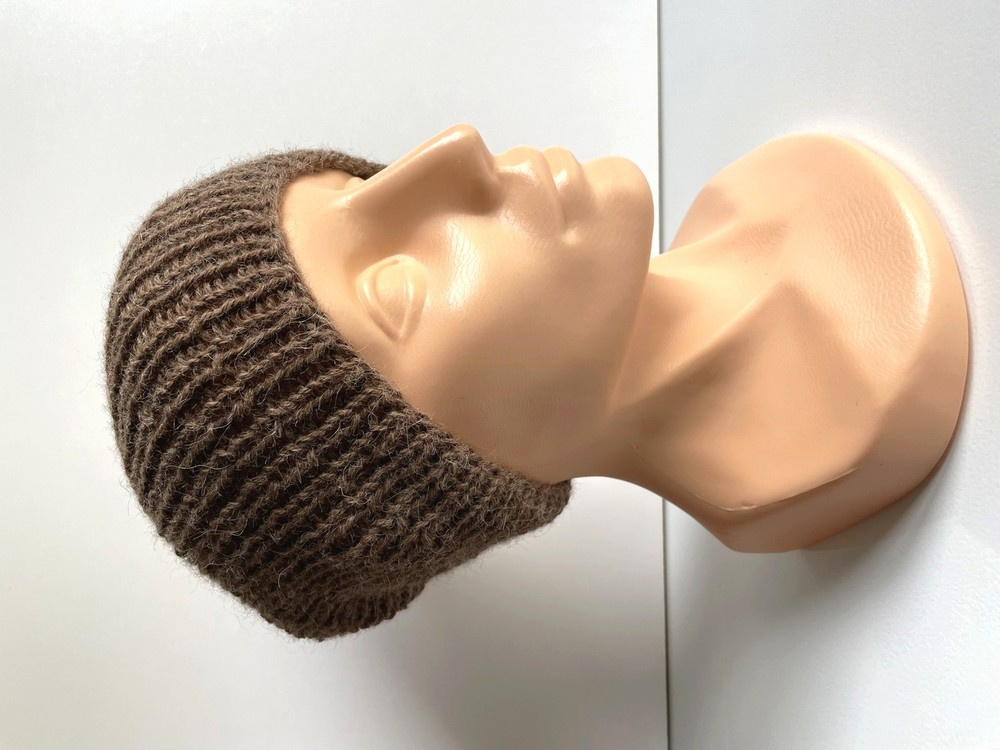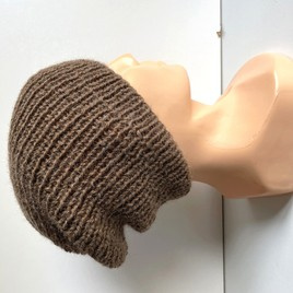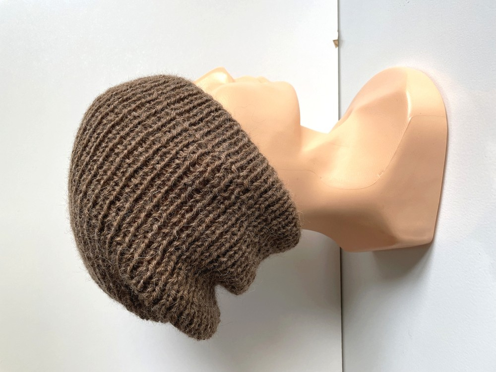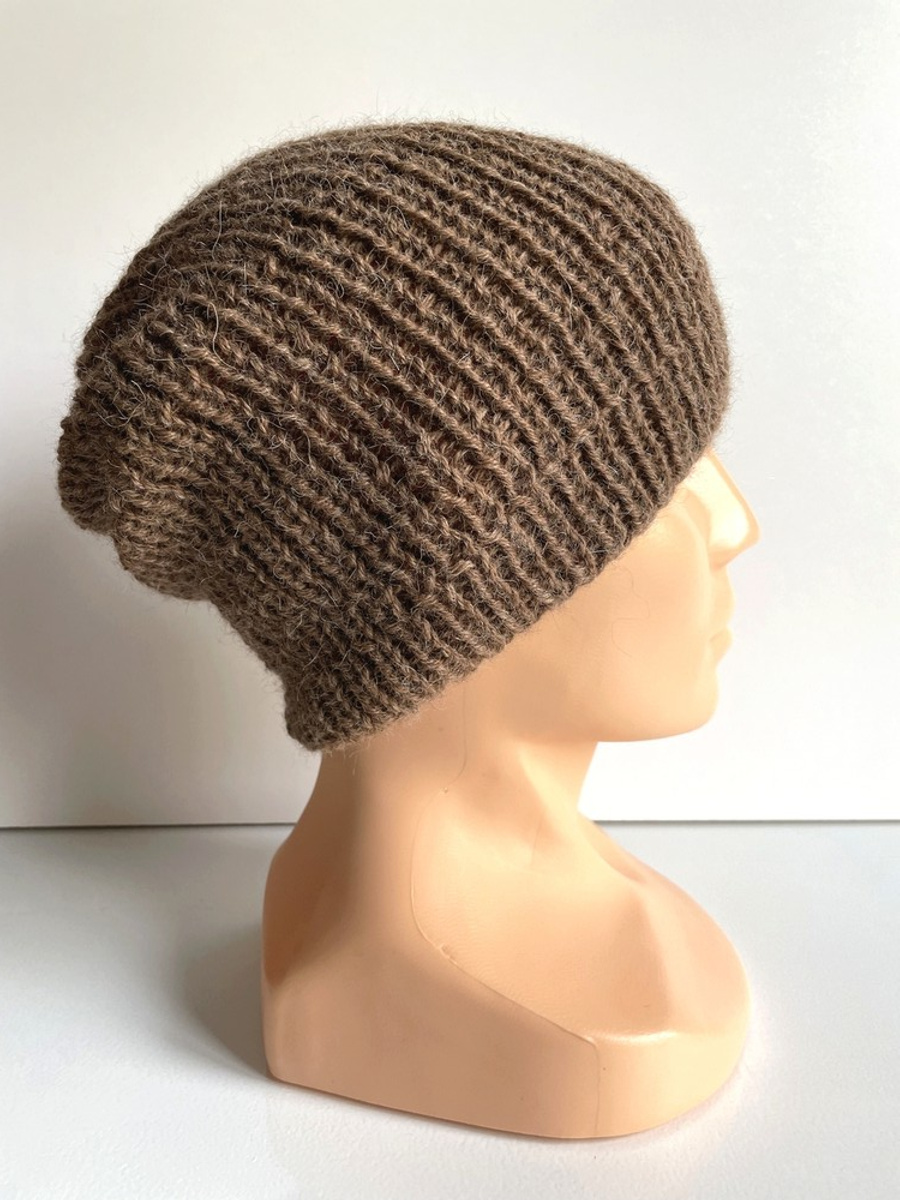 - Czapka zrobiona na drutach Ściągacz 100% Alpaka 607 Jasny Brąz