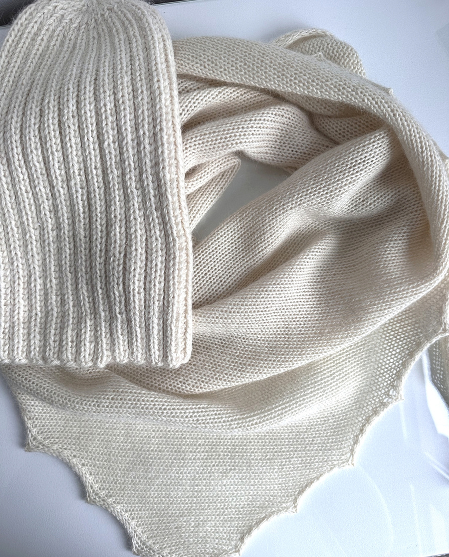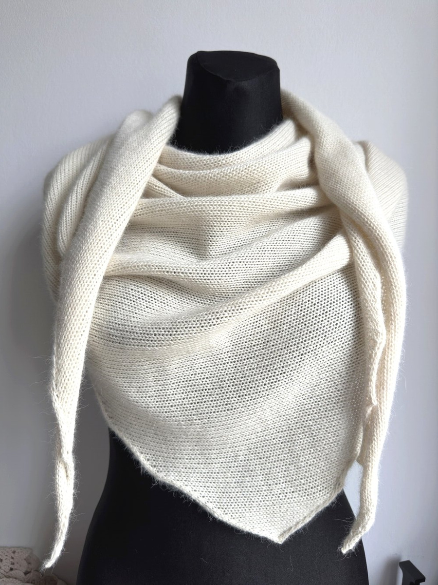 Urocza chusta ze 100% Alpaki. Wykonana gładkim ściegiem. Idealnie pasuje do czapki LAURIN lub KIARA.