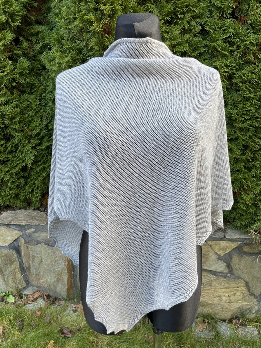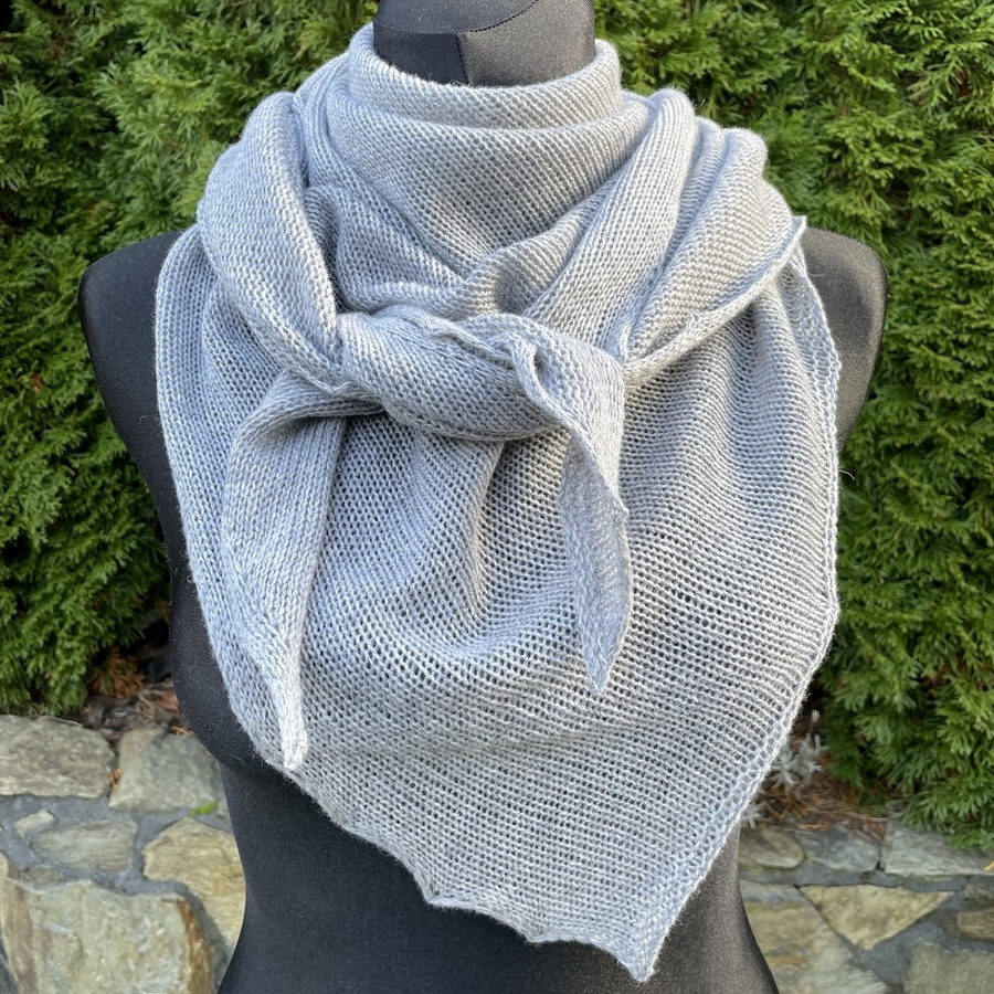 - Chusta asymetryczna merynos i kaszmir, gładka, Szara