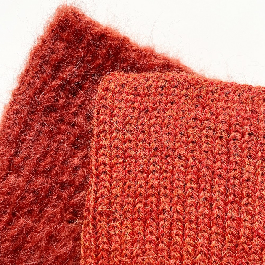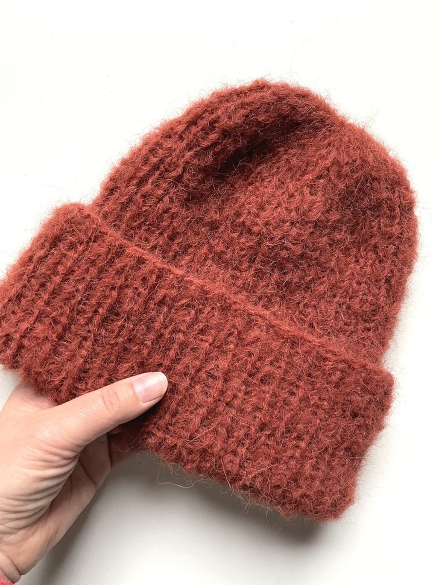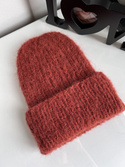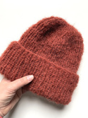 Ręcznie robiona czapka damska WATA CUKROWA Alpaka z Merynosem 19 Cegła