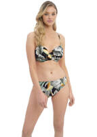 Bamboo Grove features a large-scale botanical print of palm, banana and monstera leaves in a greyscale, illustrated design. Resting upon a black ground, we just love how the sage green and mango accent tones have been weaved into the design through the leaves and abstract cantaloupe slices. Choose your favourite styles from a line-up of Fantasie favourites, and complete the look with a Kaftan.