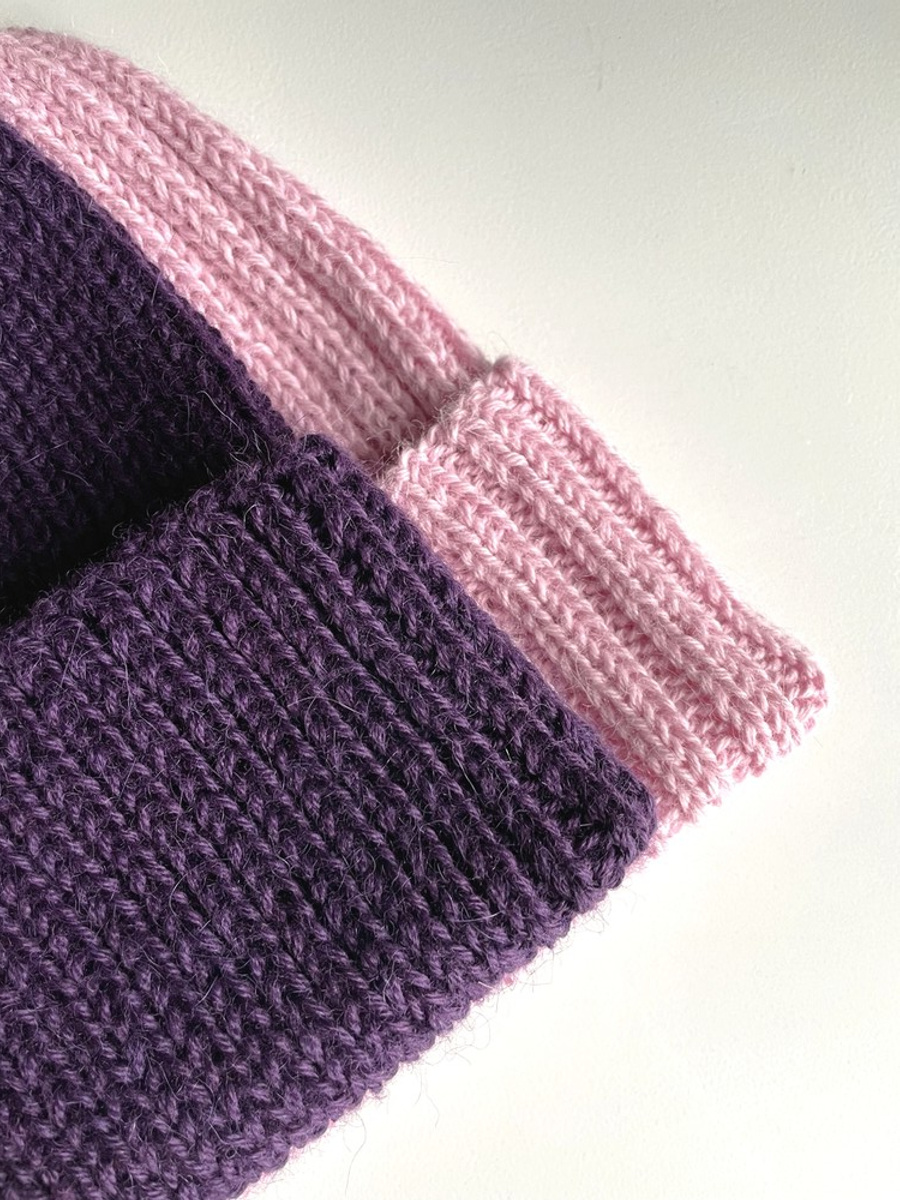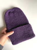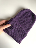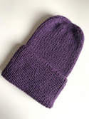 Czapka wywijana wykonana ręcznie na drutach KIARA 100% Alpaka 4400 Ciemno Fioletowy