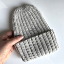 Czapka wywijana zrobiona ręcznie LAURIN 100% Alpaka 9020 Perłowo Szary Jasny