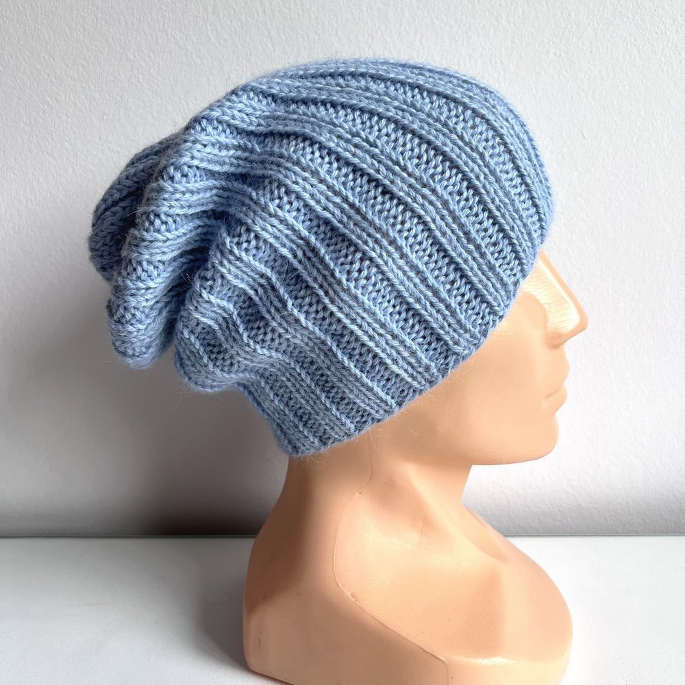 Czapka zrobiona na drutach LAURIN 100% Alpaka 6205 Błękitny