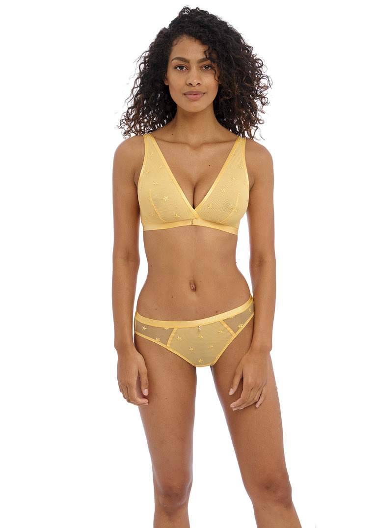 A playful take on the original, Snapshot Star is here to shine bright amongst your lingerie wardrobe for AW22. Available in a warm honeycomb colourway, the embroidered star design rests upon the collection’s fine soft mesh. Like Snapshot, the show through design elements throughout the collection invite your body to play a role as a key design feature too. All styles feature a trio of stars trinket to complete the look.