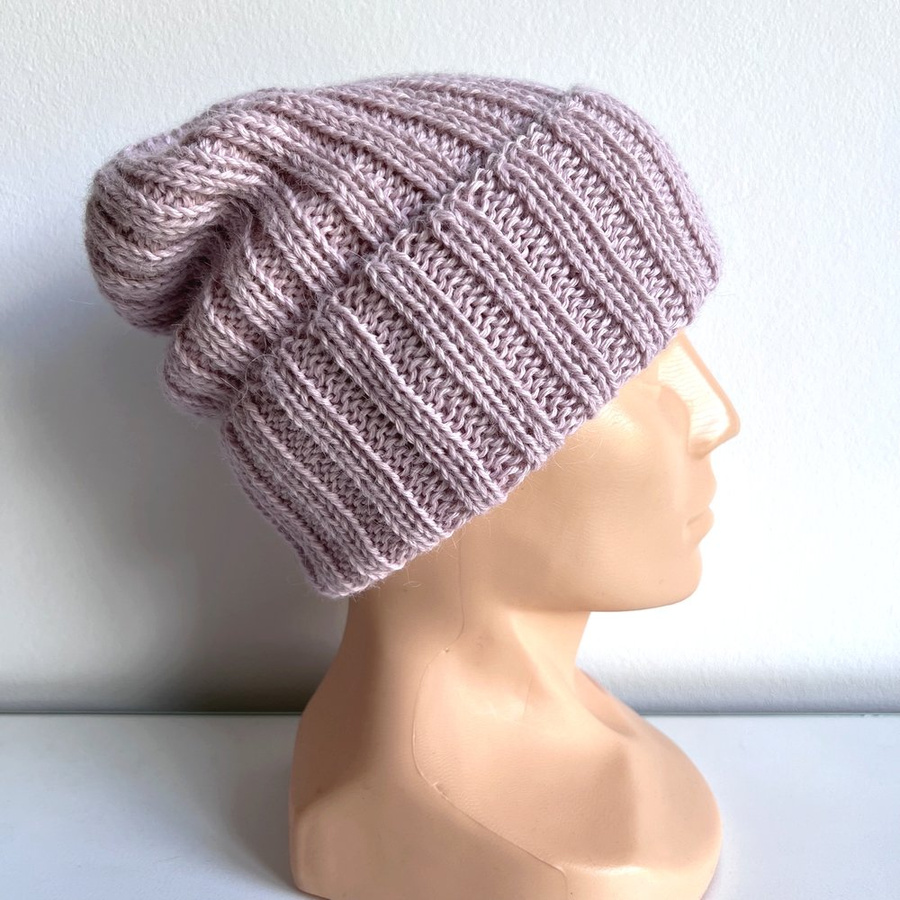- Czapka wywijana zrobiona ręcznie na drutach Prążki 100% 3112 Różowy z nutką beżu. Inne kolory na zamówienie