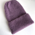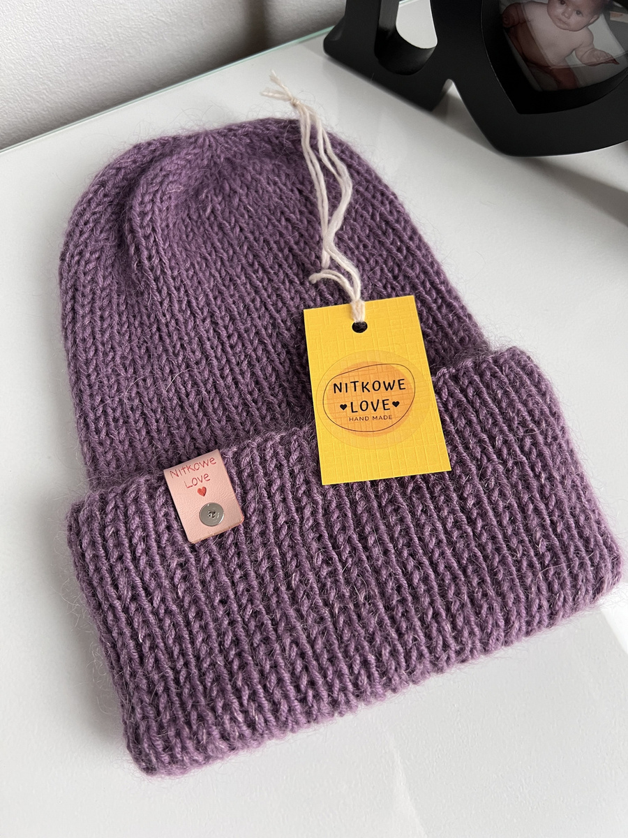 - Czapka robiona ręcznie hand made Wywijana Ściągacz 100% Baby Merino plus moher i jedwab 40 Ametyst