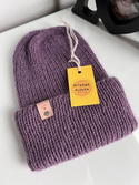Ręcznie robiona czapka beanie AUREA 100% Baby Merino plus moher i jedwab 40/05 Ametyst