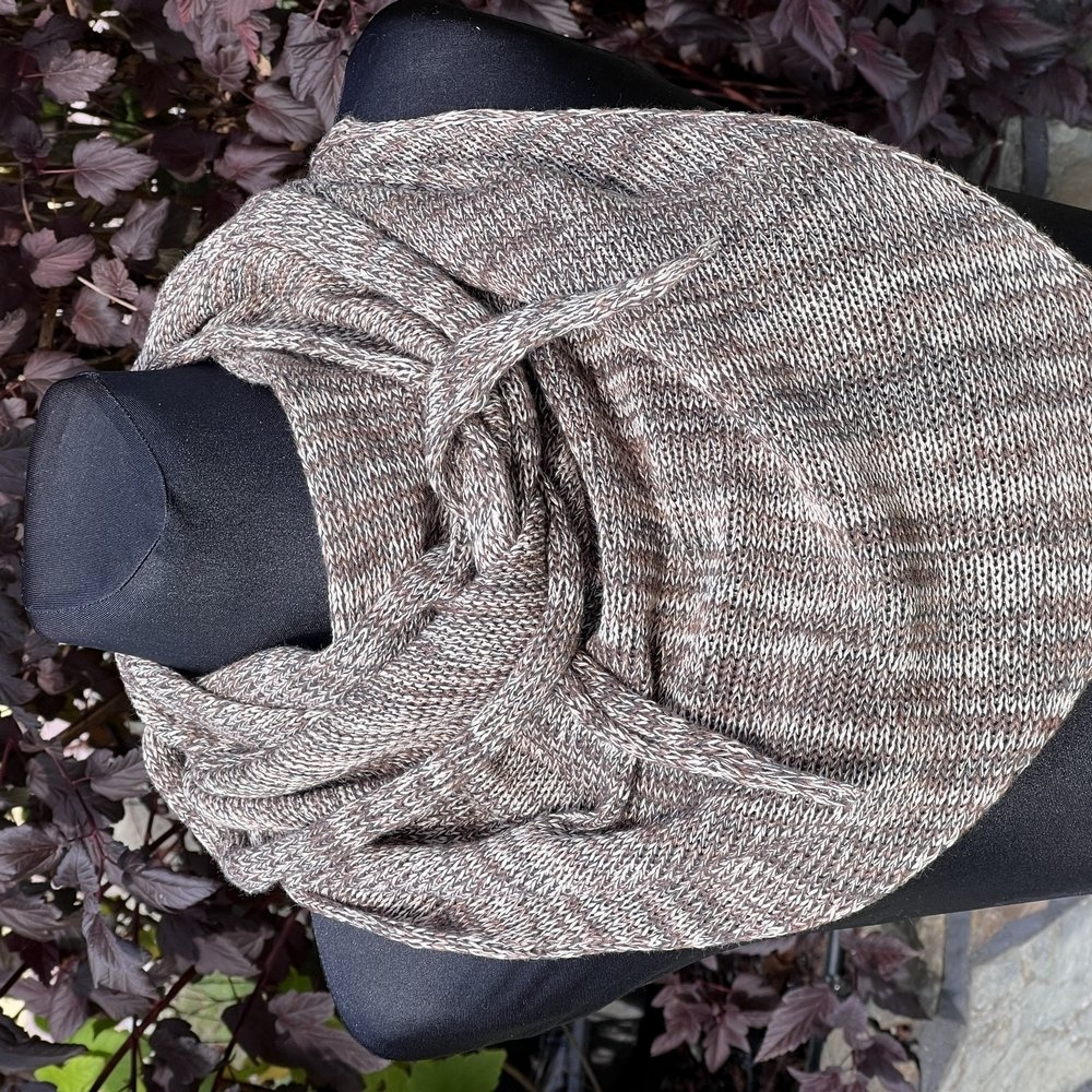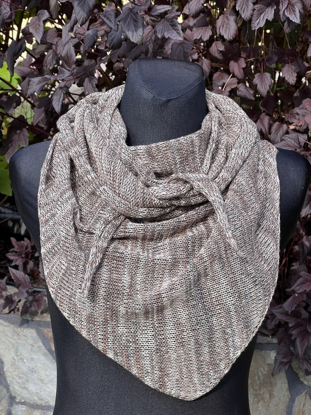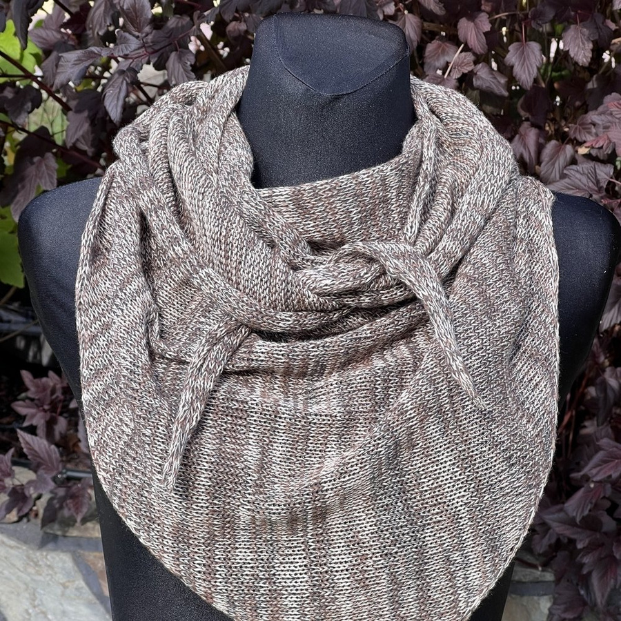 Elegancka chusta z wysokiej jakości mieszanki bawełny i akrylu wykonana przeze mnie na maszynie dziewiarskiej z troską i dbałością o każdy szczegół. Wykończona ręcznie.