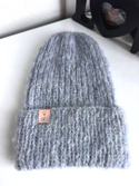 Ręcznie robiona czapka damska WATA CUKROWA Alpaka z Merynosem 02 Mgła