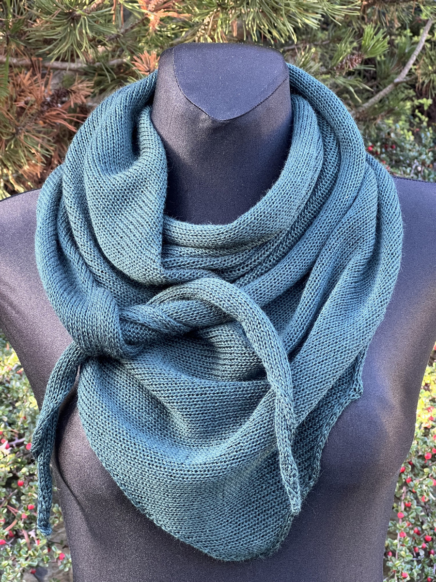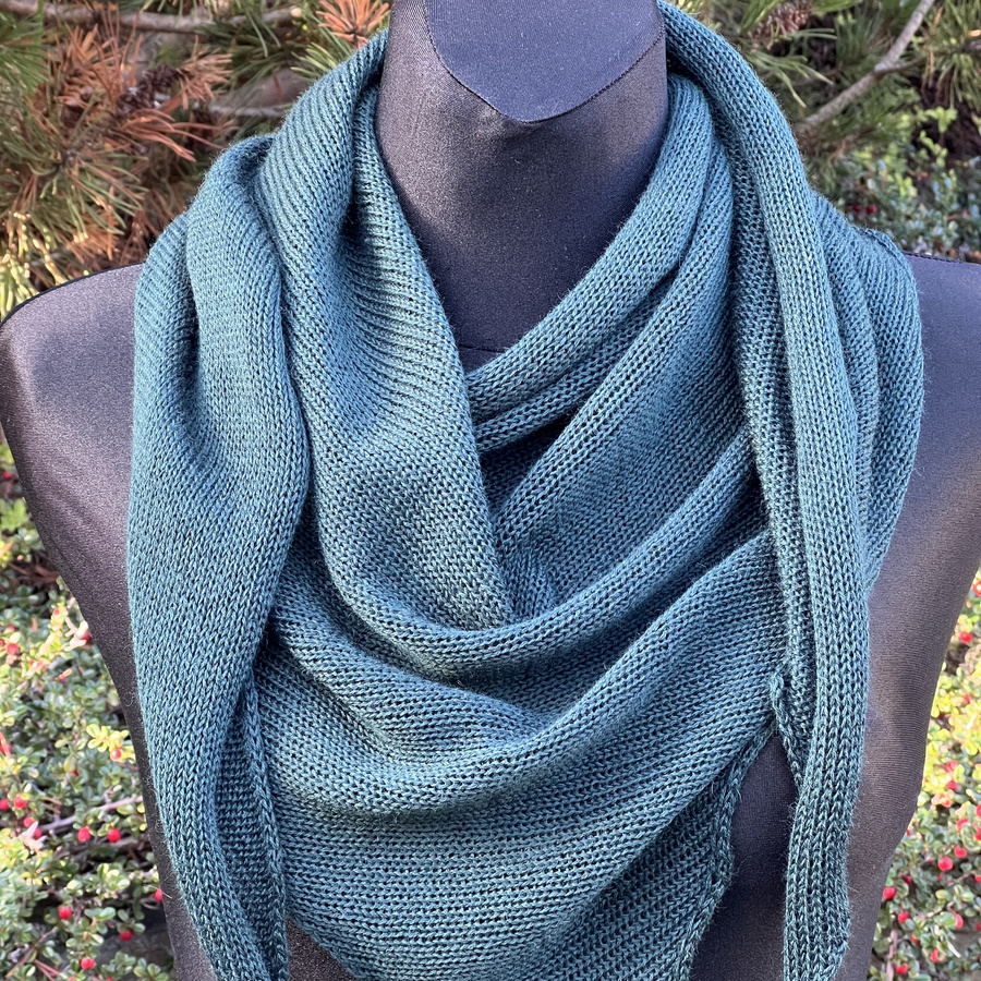 Prosta chusta z wysokiej jakości włóczki, wykonana gładkim ściegiem.