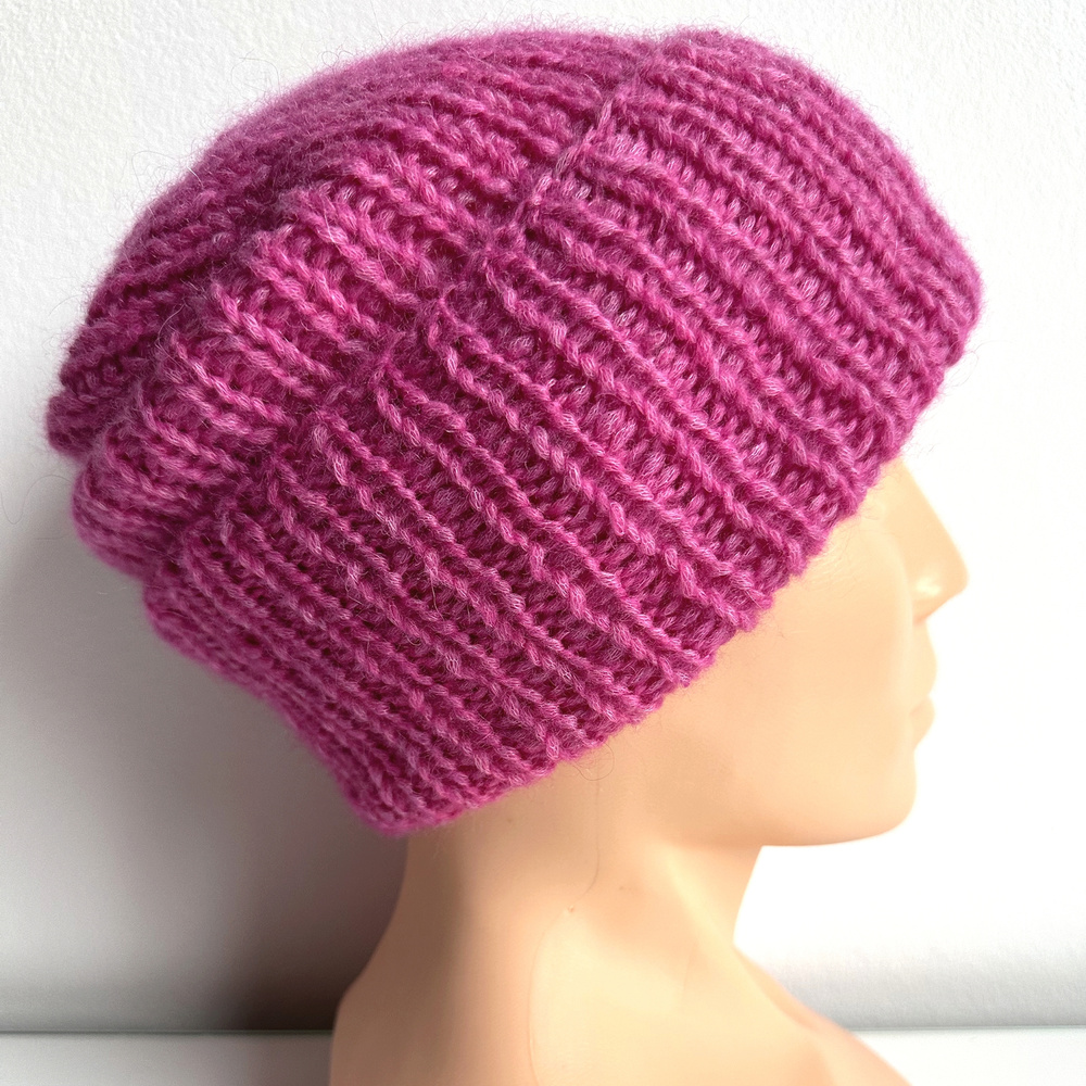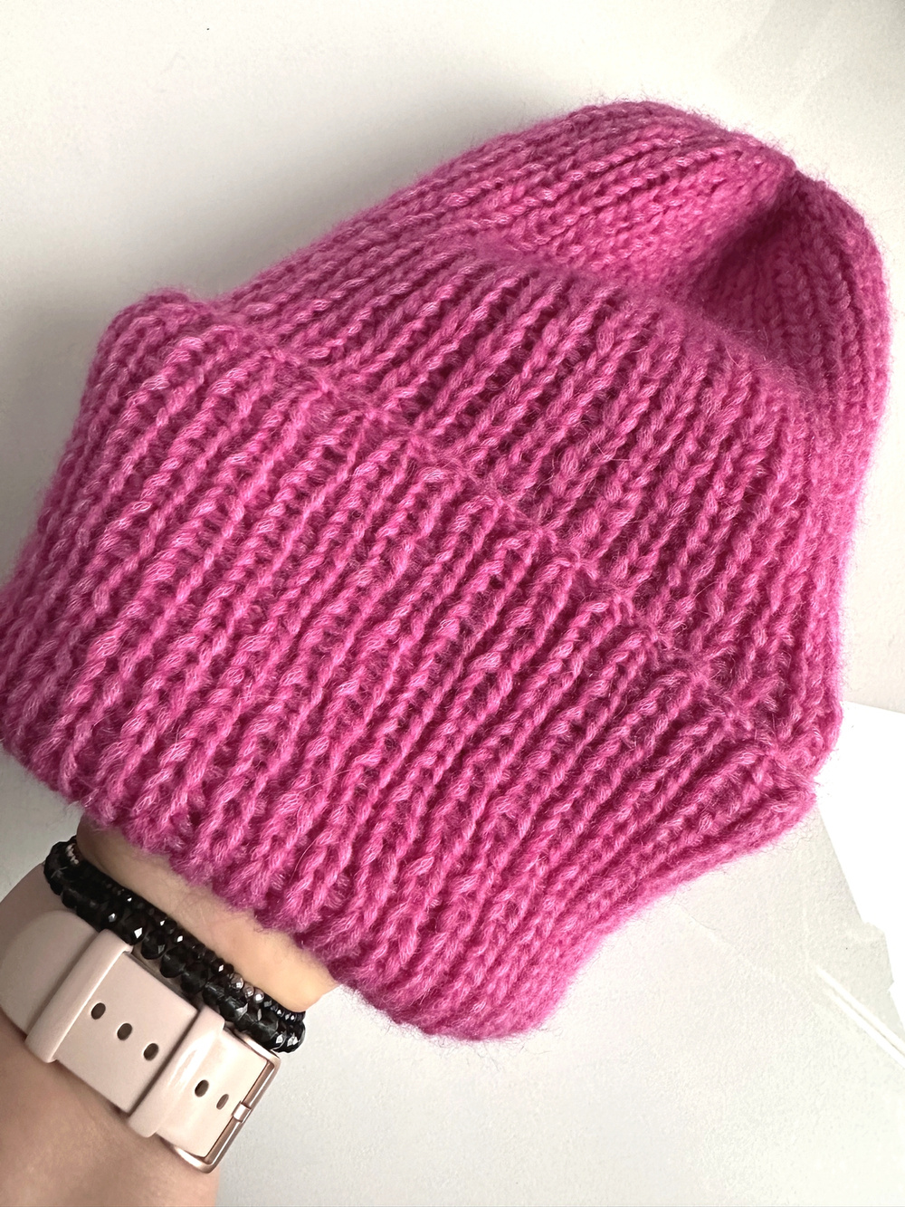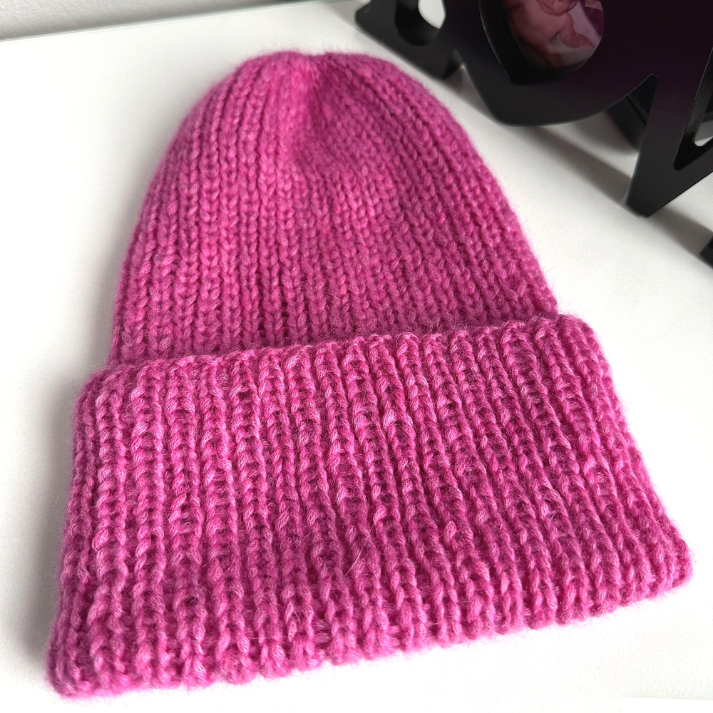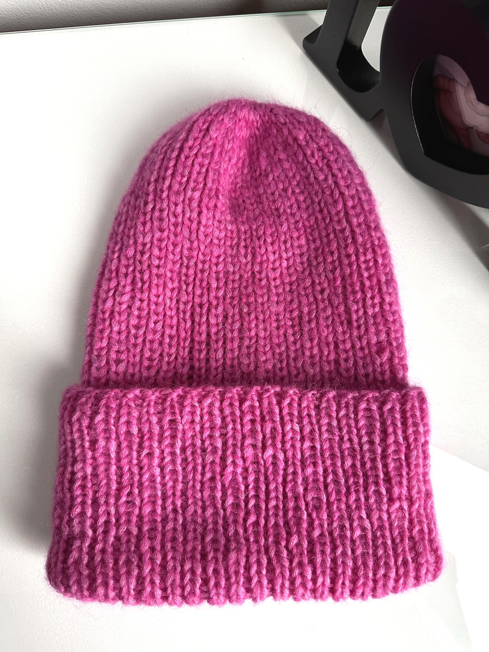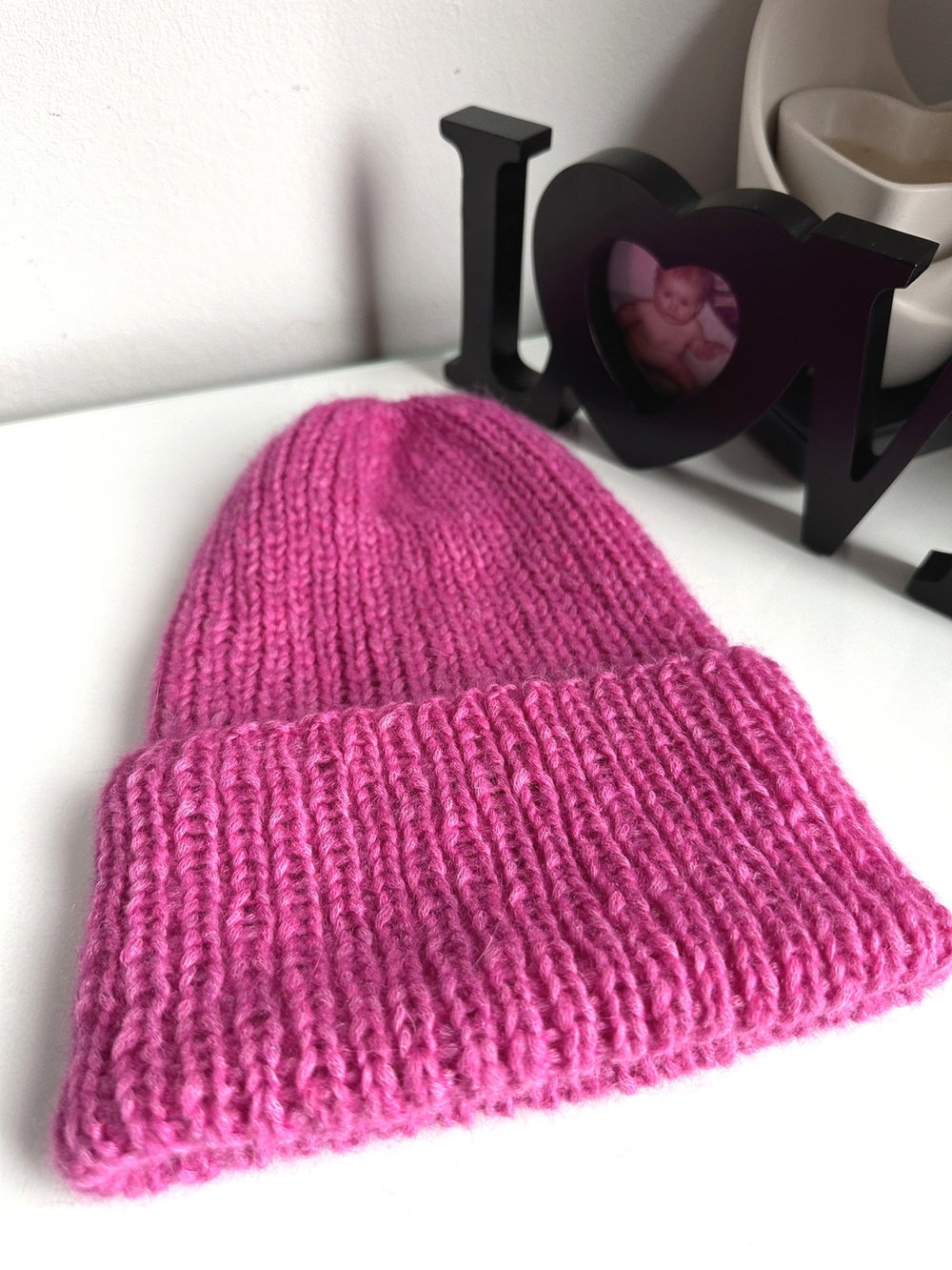 Ciepła czapka ręcznie robiona wywijana CHMURKA Alpaka 39 Magenta