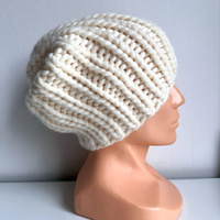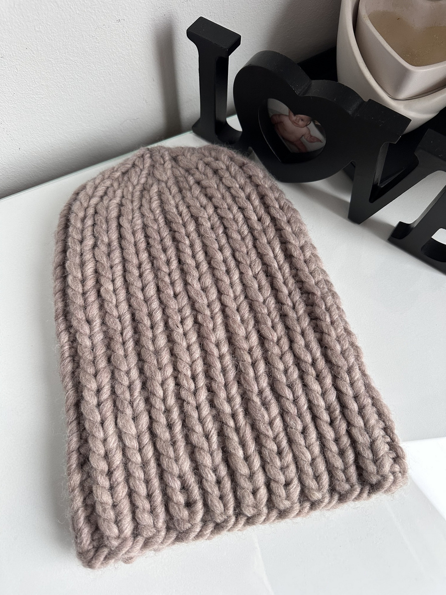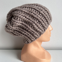 Duża, ciepła czapka ręcznie robiona na drutach. Idealna jako czapka zimowa. Gruba, solidna, ale delikatna i miła. Jeśli szukasz subtelniejszej wersji, postaw na czapki 100% merino.