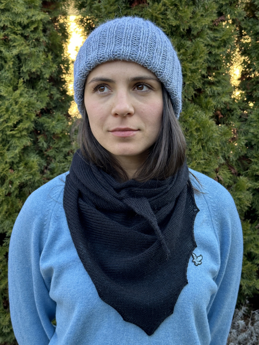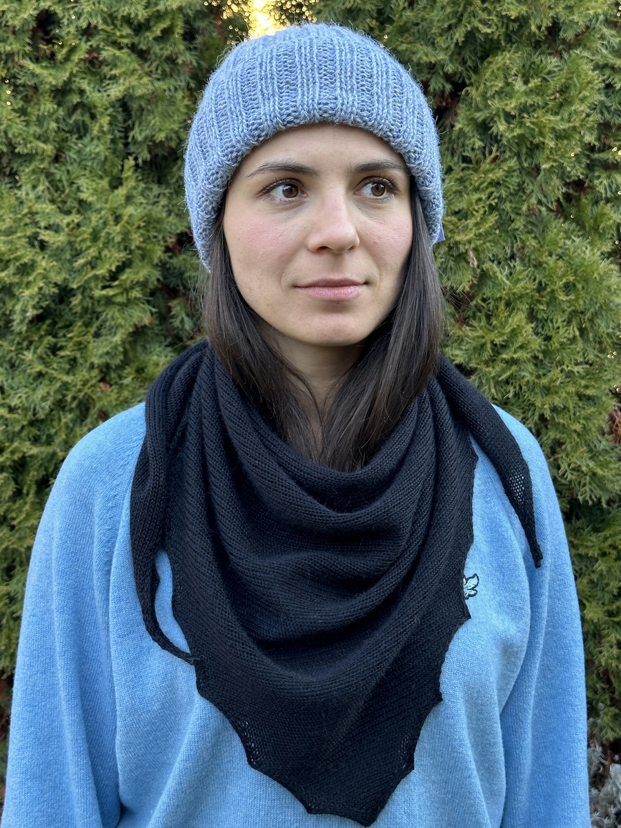 Urocza chusta ze 100% Alpaki. Wykonana gładkim ściegiem. Idealnie pasuje do czapki LAURIN lub KIARA.