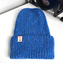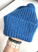 Ciepła czapka ręcznie robiona wywijana CHMURKA Alpaka 37 Bluebird
