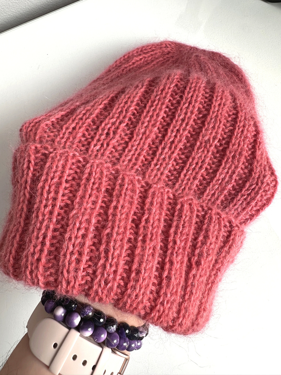 Ręcznie robiona Czapka wywijana MARGARET 100% Alpaka + nitka moher i jedwab 9022/32 Koralowy