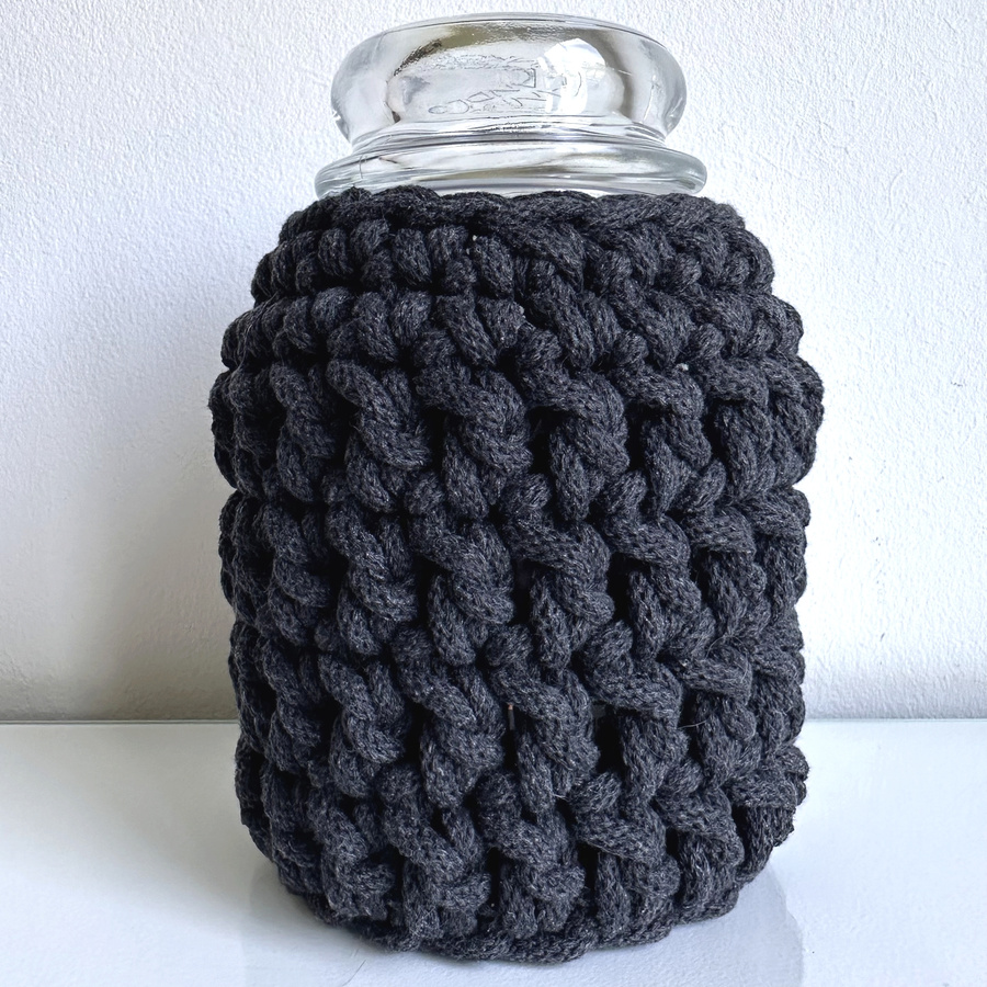 Ręcznie robiony Sweterek na świecę ze sznurka bawełnianego 175 Antracyt