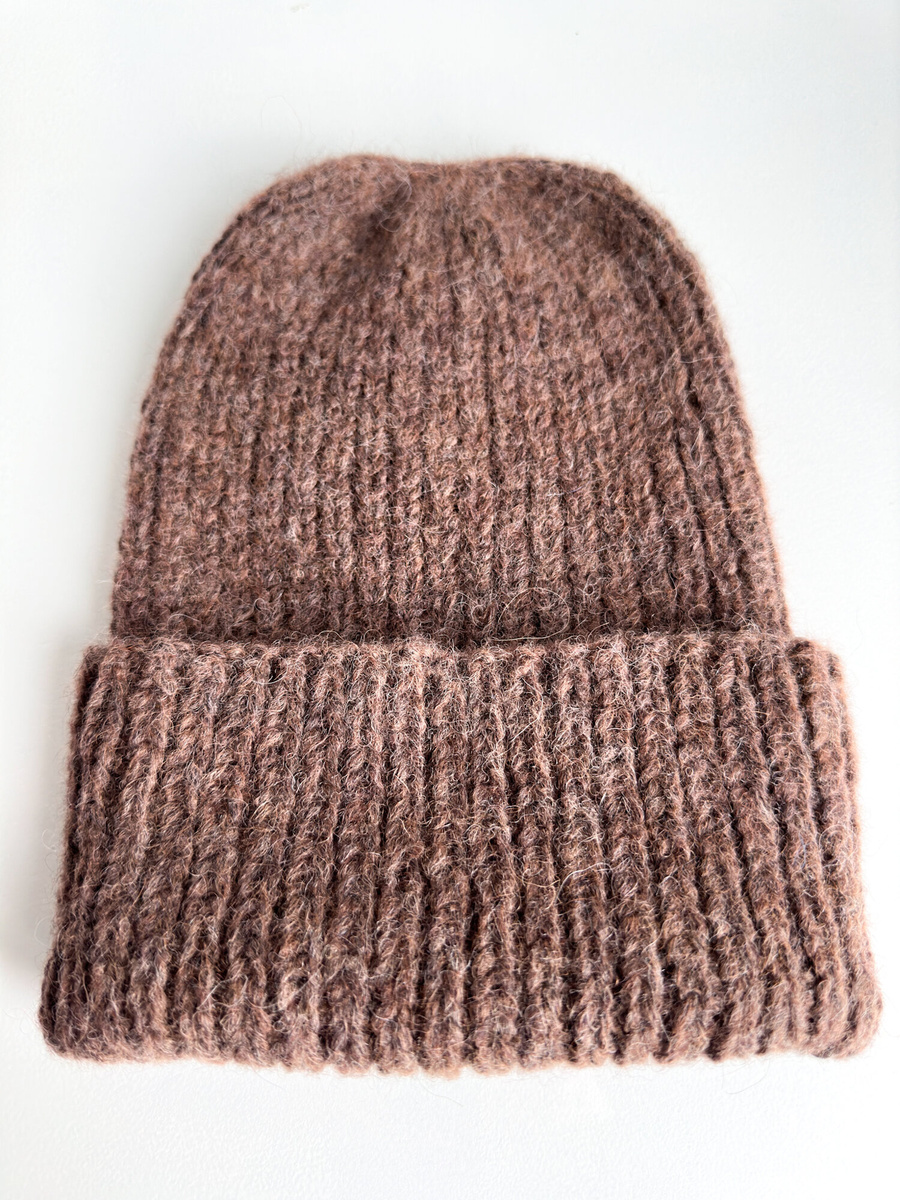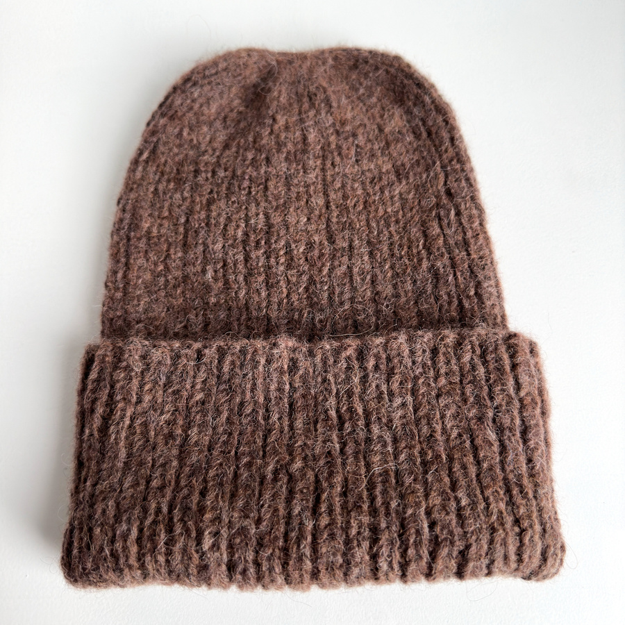 Ciepła czapka ręcznie robiona wywijana CHMURKA Alpaka 05 Brąz