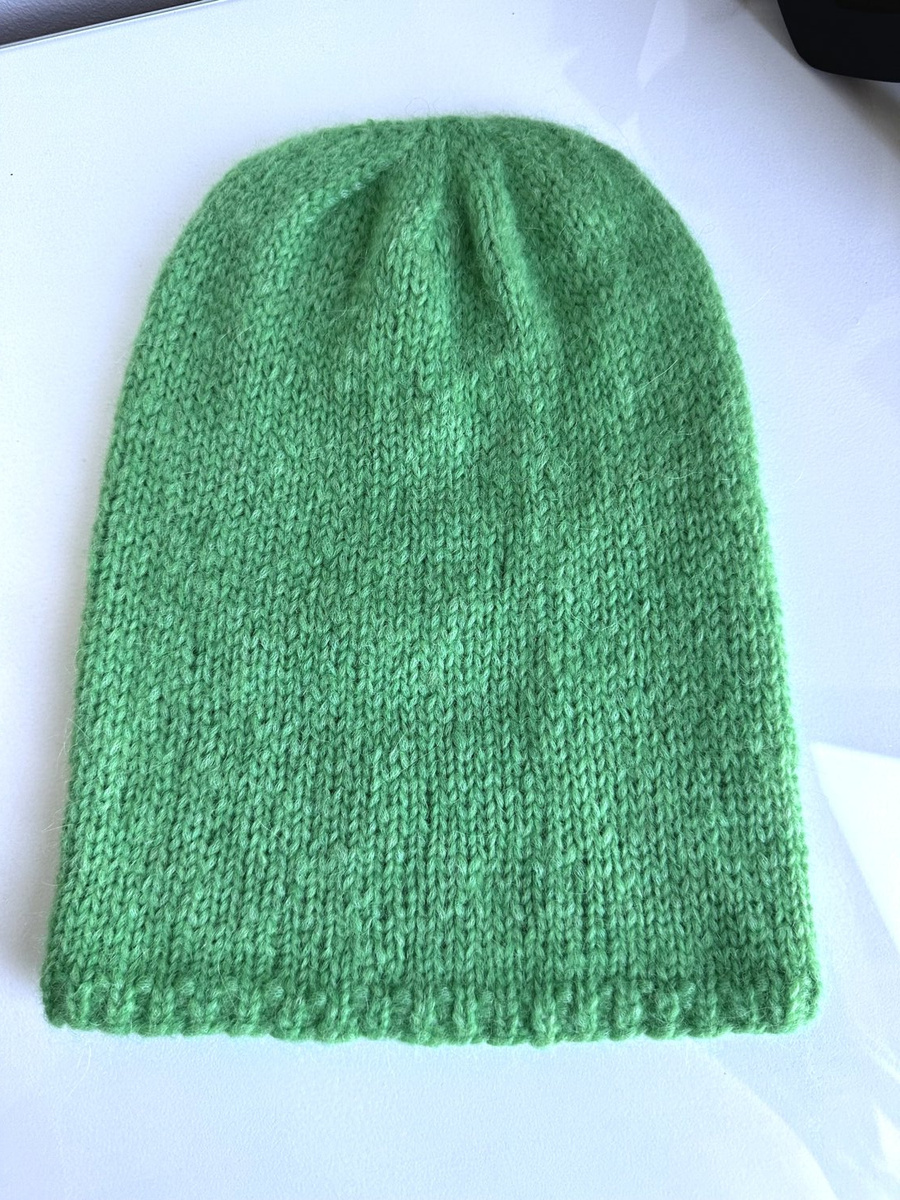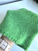 Opinie o Ciepła czapka ręcznie robiona CHMURKA Alpaka 43 Papuzia Zieleń