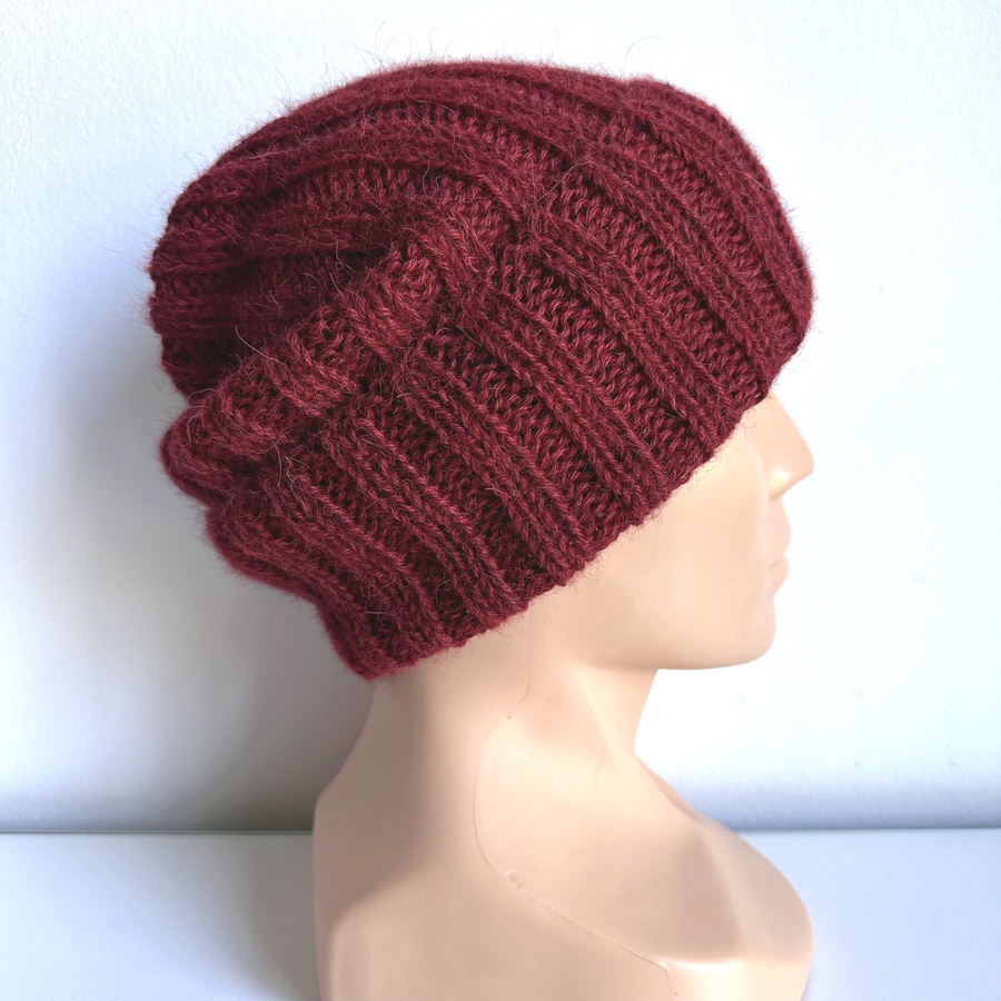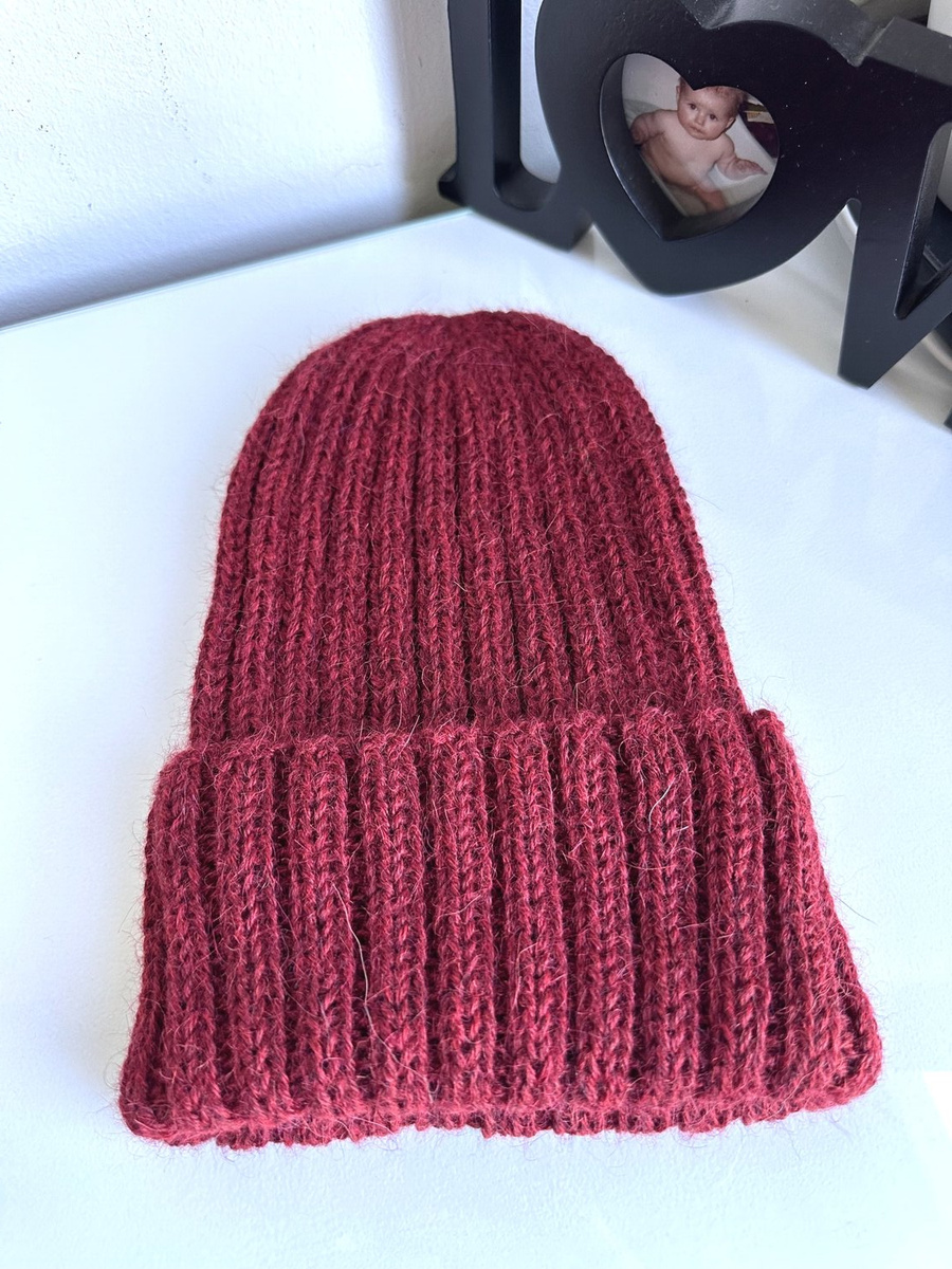 Ręcznie robiona Czapka wywijana LAURIN 100% Alpaka 3650 Bordowy