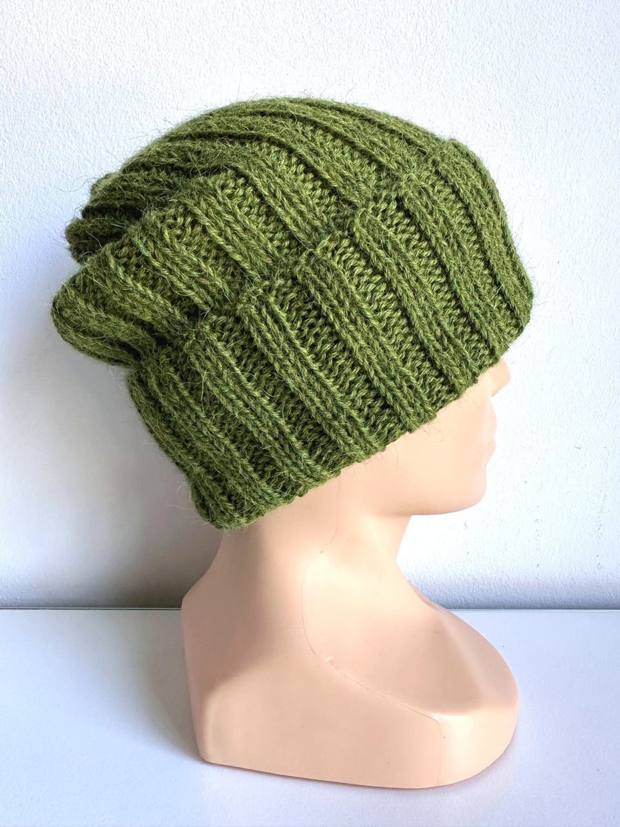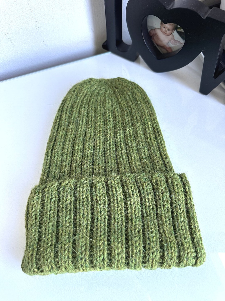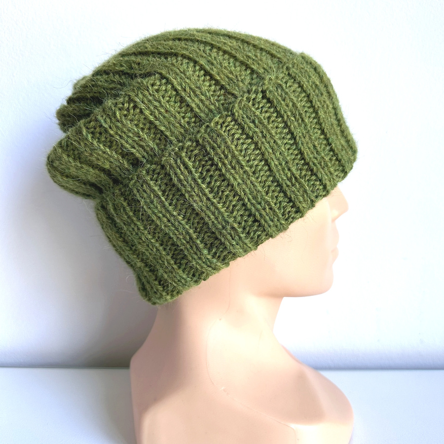 Ręcznie robiona Czapka wywijana LAURIN 100% Alpaka 7238 Zielona Trawa