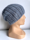 Ręcznie robiona Czapka MARGARET 100% Alpaka plus nitka moher z jedwabiem 9021/06 Mgła