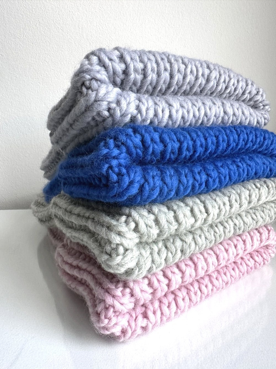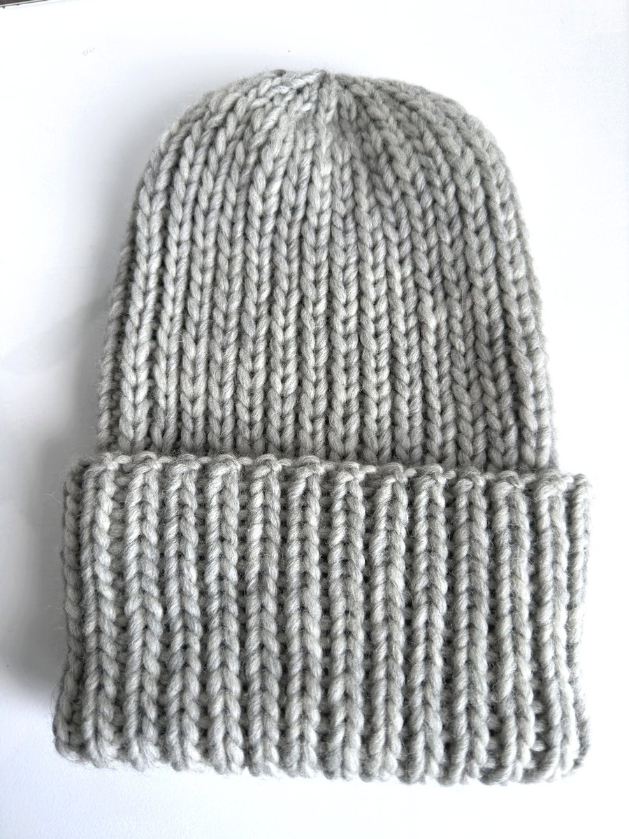 Duża czapka ręcznie robiona na drutach. Będzie idealna jako czapka zimowa. Choć jest gruba i solidna, to jednocześnie delikatna i miła. A może szukasz subtelniejszej, cieńszej wersji? Wówczas zobacz moje czapki 100% merino.