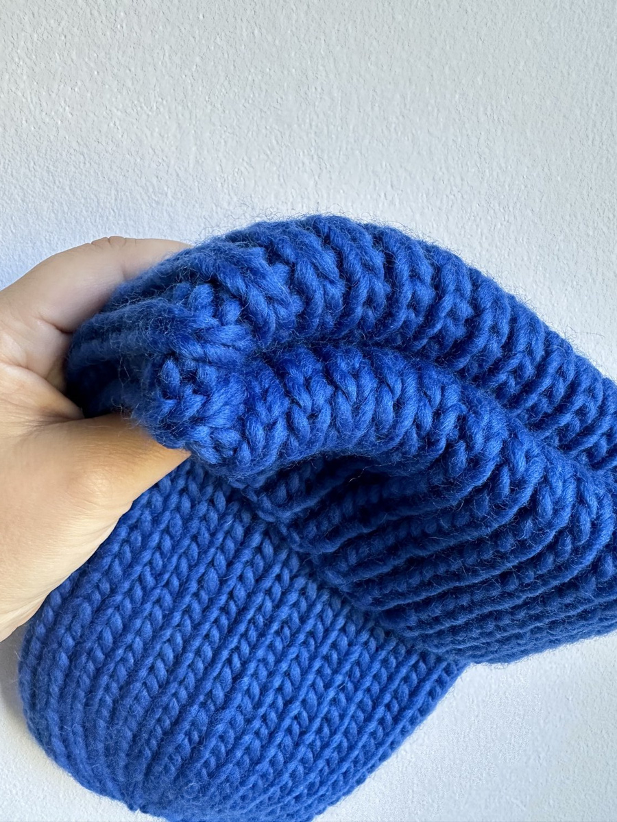 Duża czapka ręcznie robiona na drutach. Będzie idealna jako czapka zimowa. Choć jest gruba i solidna, to jednocześnie delikatna i miła. A może szukasz subtelniejszej, cieńszej wersji? Wówczas zobacz moje czapki 100% merino.