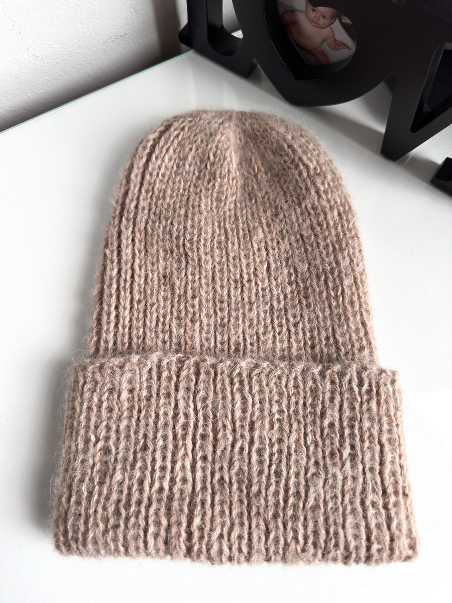 Ręcznie robiona czapka damska MORGANA Alpaka z Jedwabiem 2020/04 Jasny Nugat