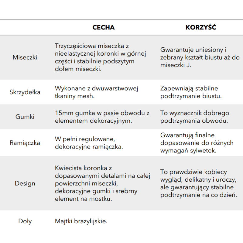 - Dolne miseczki z podszewką we wszystkich rozmiarach wspierają i podnoszą do miseczki J