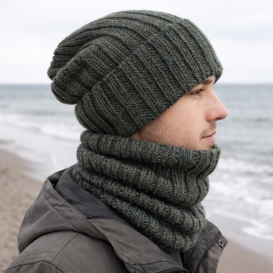 - Komin zrobiony na drutach z wełny - 100% Alpaka. Tworzy świetny komplet z czapkami z alpaki.