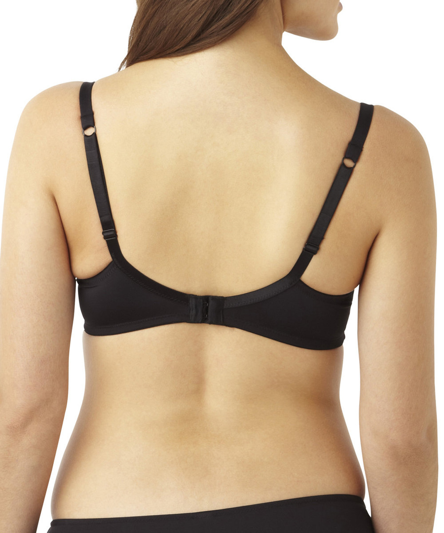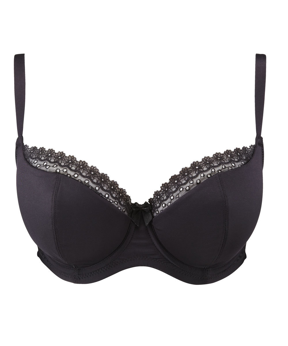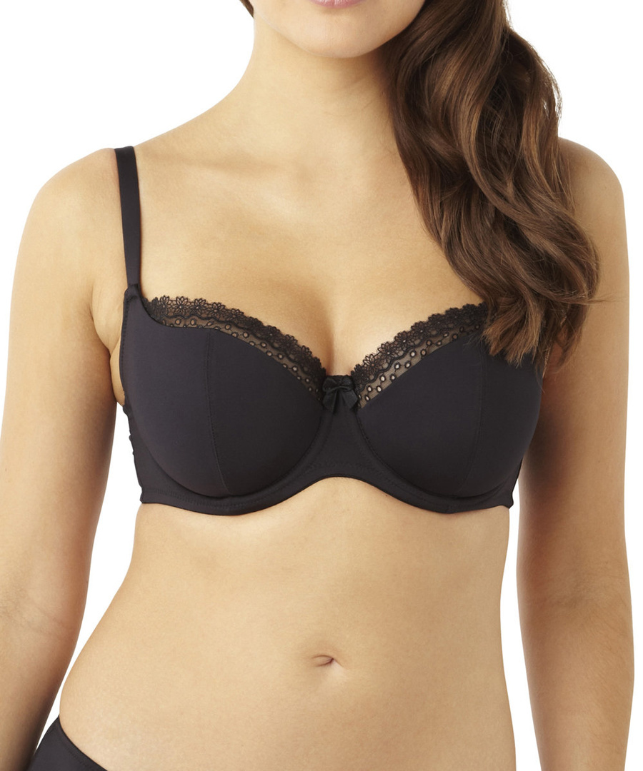 Biustonosz Cleo Panache JUNA 6461 Black. Piankowe miseczki dla podtrzymania, komfortu i ładnego kształtu, dostępne do rozmiaru H. Miękka mikrofibra czyni z tego modelu idealny biustonosz codzienny. Ażurowy haft w górnej części miseczki. Gładki kształt, świetny pod ubrania.