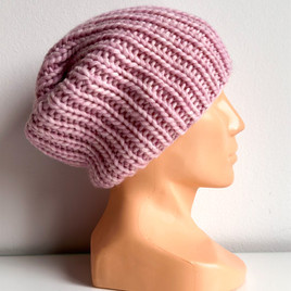 Ręcznie robiona czapka damska JANKA 100% Wełna owcza 30 Pastelowy Róż