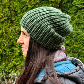Ręcznie robiona czapka wywijana JANKA 100% Wełna owcza 97 Ciemny Bluszcz