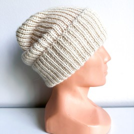 Czapka wywijana zrobiona ręcznie na drutach KIARA 100% Alpaka 100 Ecru