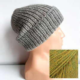 Czapka wywijana zrobiona ręcznie na drutach KIARA 100% Alpaka 9038 zielona szałwia