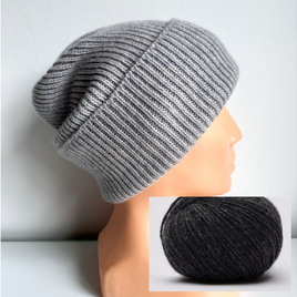 Ręcznie robiona czapka wywijana JANKA 100% Wełna owcza 48 Nugat