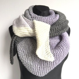 Chusta trójkątna ręcznie zrobiona na drutach. Fioletowo-szara Ombre