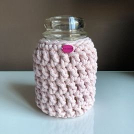 Ręcznie robiony Sweterek na świecę ze sznurka bawełnianego 300 jasny róż